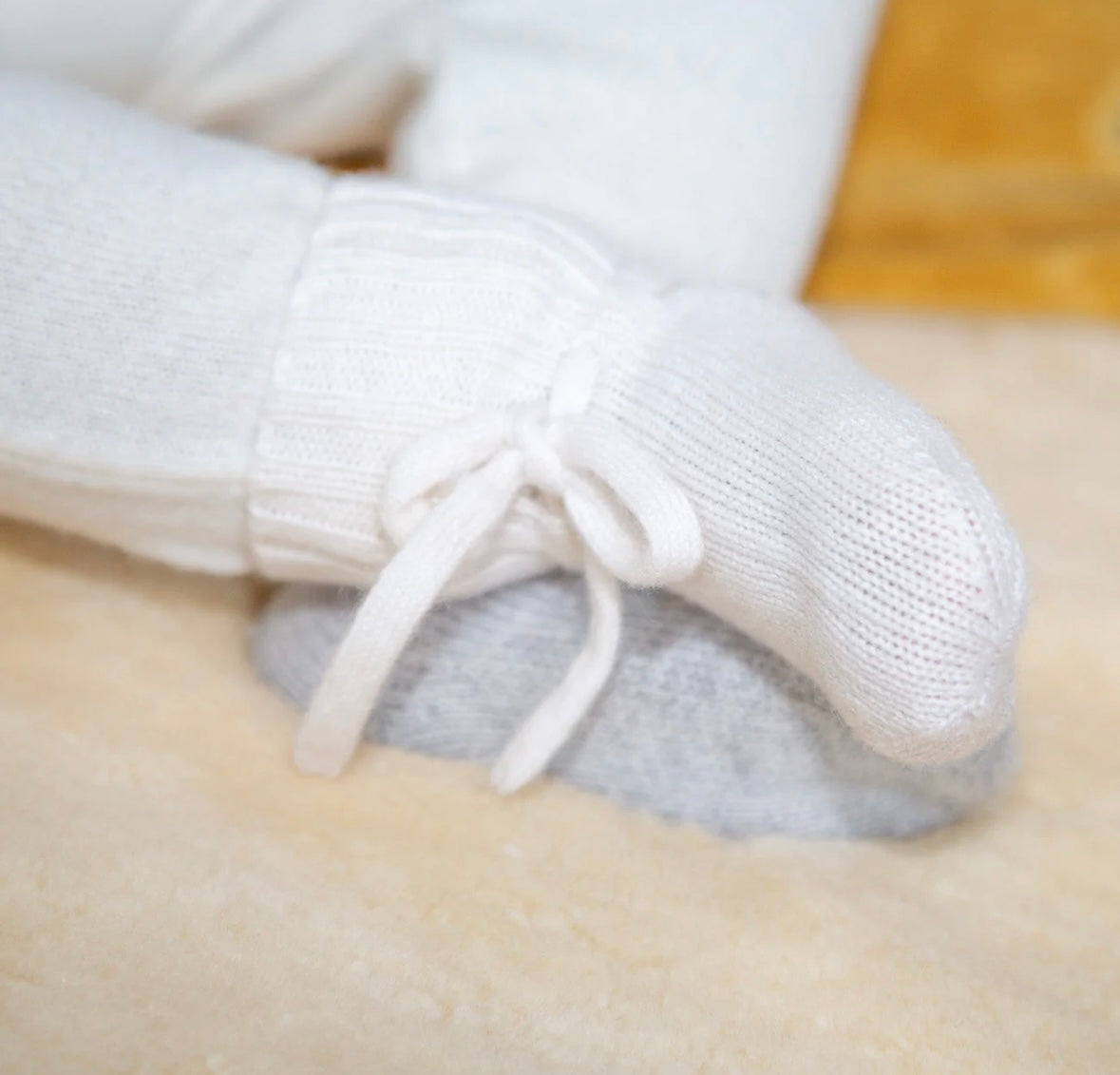 Baby-Söckchen Mimi von Papa Lobster, 0-6 Monate aus 100% Kaschmir, Farbe: off white