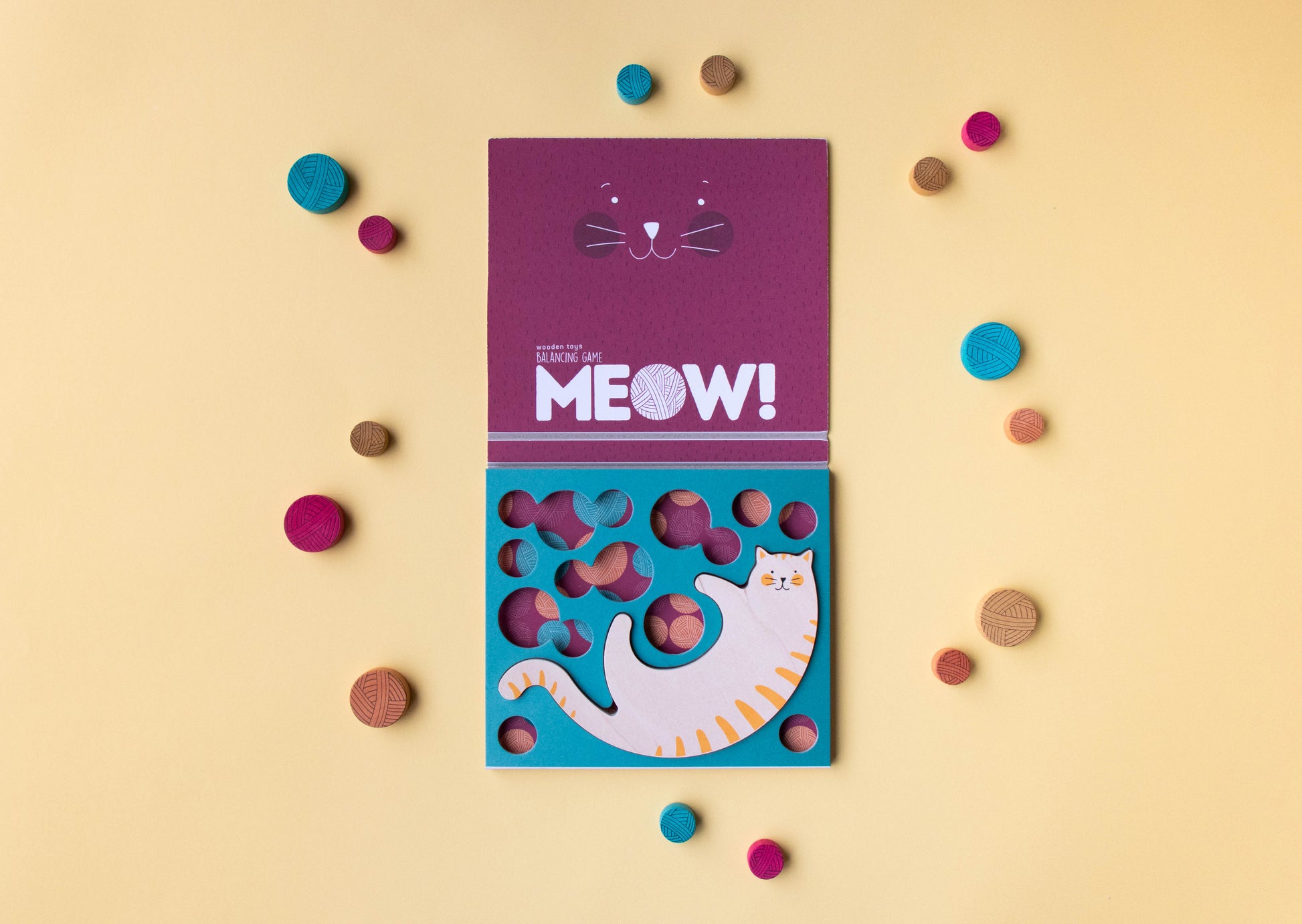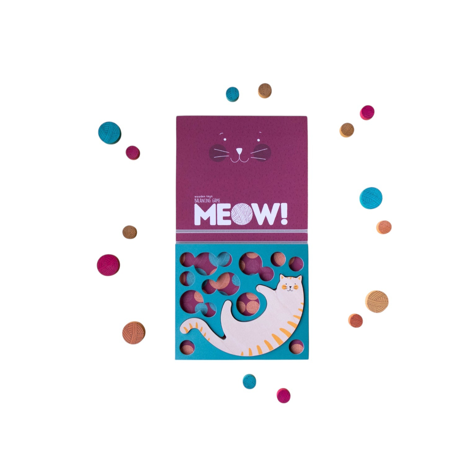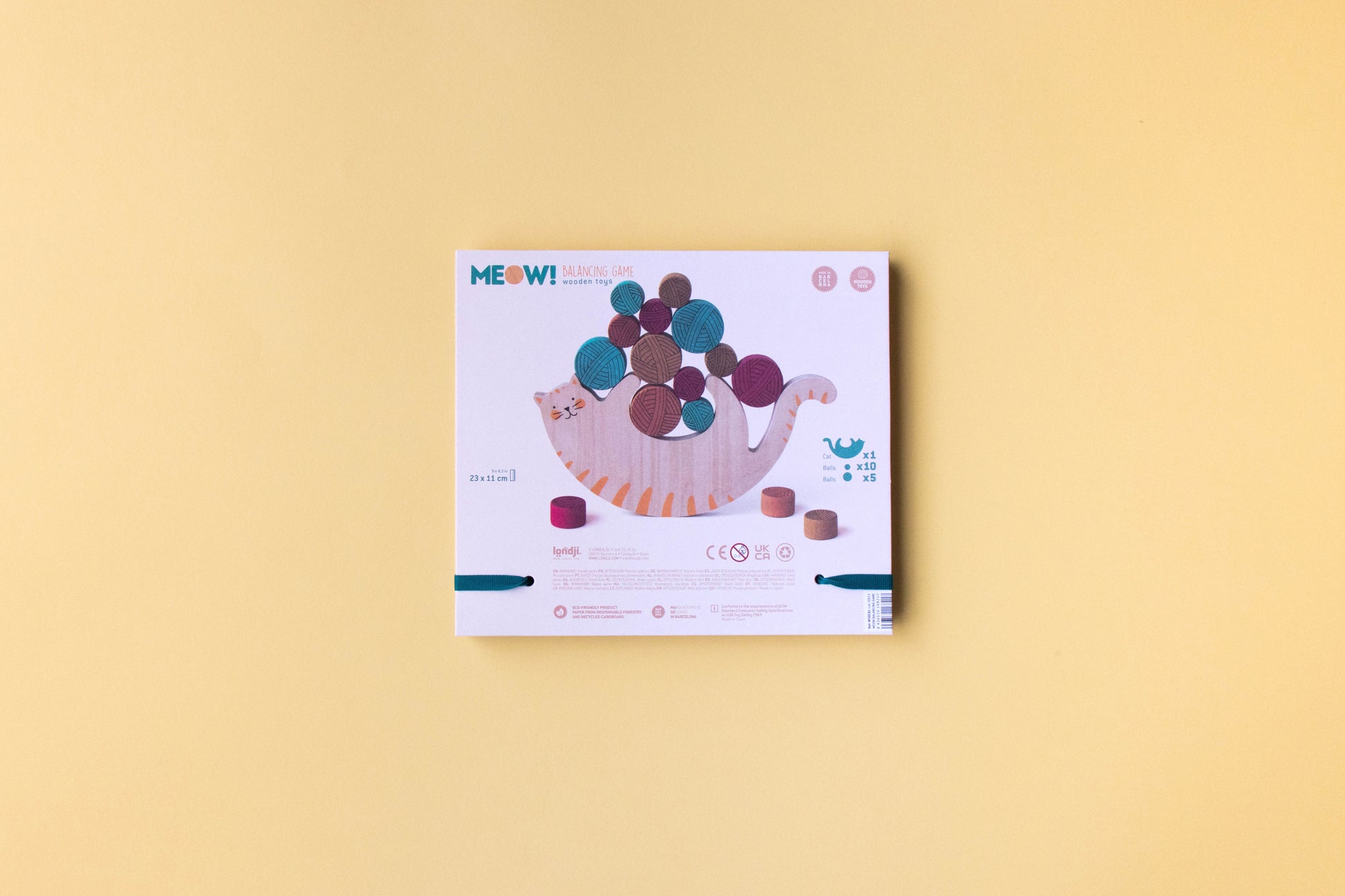Spielen Sie mit diesem süßen Kätzchen und legen Sie alle Wollknäuel darauf, ohne dass sie herunterfallen. Ein Balancespiel für die ganze Familie! Handgefertigt aus Birkenfurnier- und Buchenholz und mit natürlichen Farben bemalt. Wer am geschicktesten ist, gewinnt.