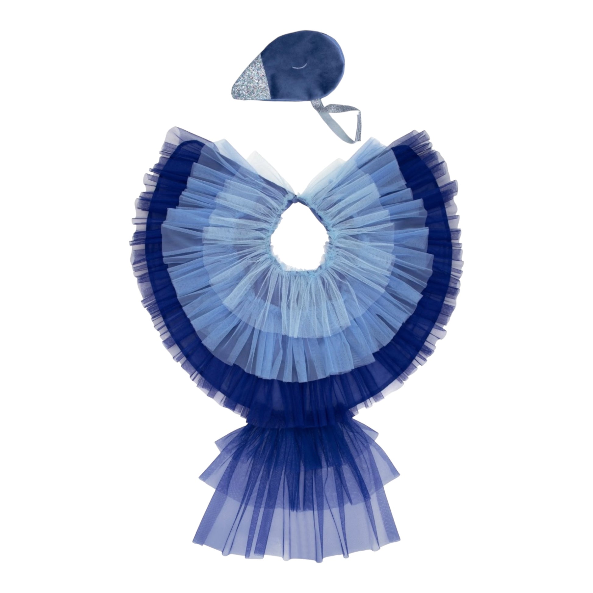 Verwandeln Sie Ihr Kind in einen wunderschönen blauen Vogel mit dem Blauer Vogel Kostüm von Meri Meri. Der Umhang, Flügel und Schwanz aus gewelltem Tüll verleihen ihm ein zauberhaftes Aussehen. Der Hut aus blauem Samt mit aufgestickten silbernen Augen und glitzerndem Schnabel machen die Verkleidung perfekt. Geeignet für Kinder von 3-6 Jahren.