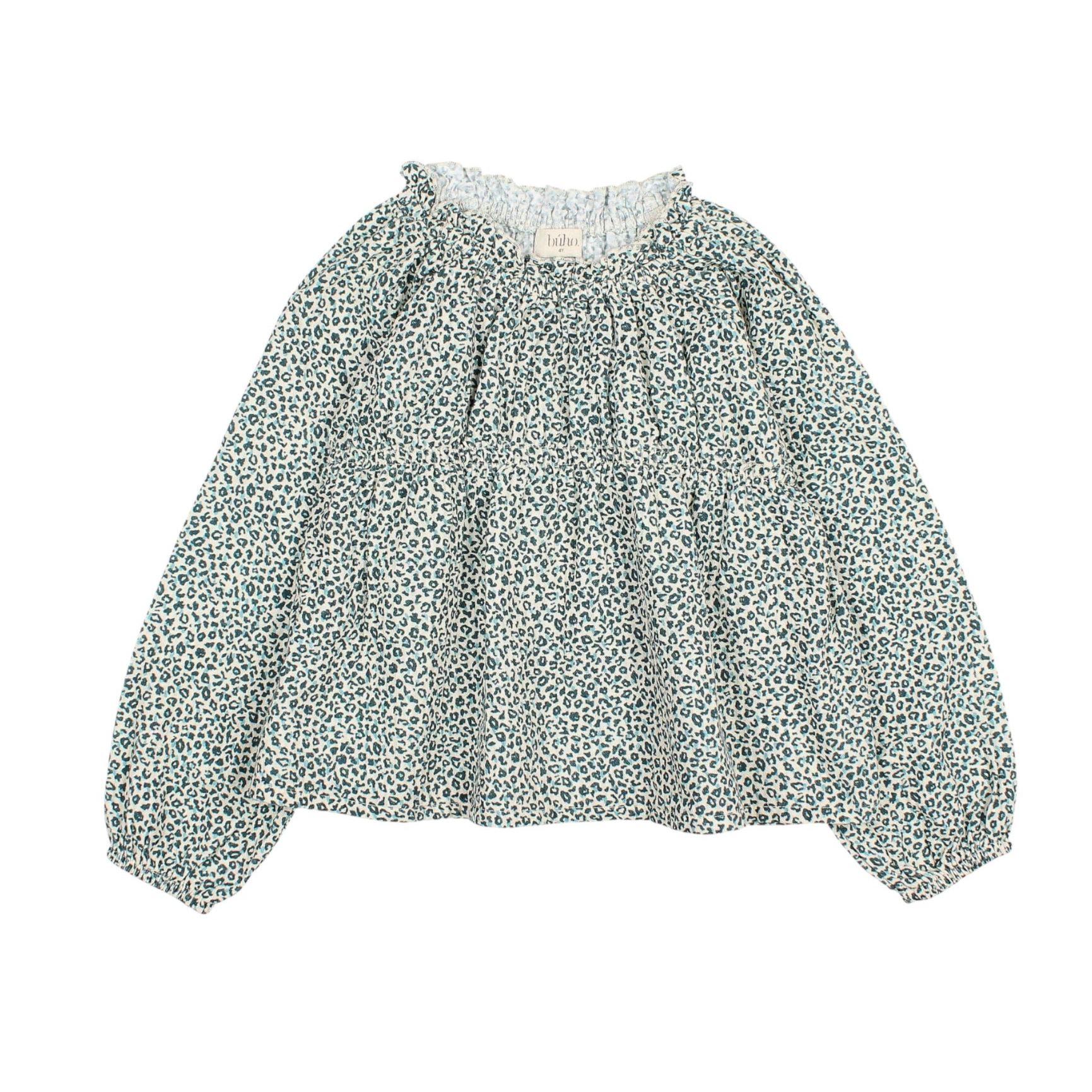 Die Bluse hat ein niedliches Tiermuster und ist aus 100% Baumwolle gefertigt. Sie hat einen elastischen Ausschnitt mit Rüschen und Falten, sowie Raglanärmel und einen elastischen Bund in der Mitte des Torsos. Eine komfortable und stilvolle Wahl für jeden Anlass.