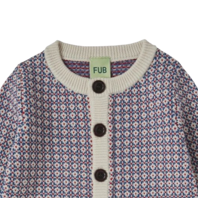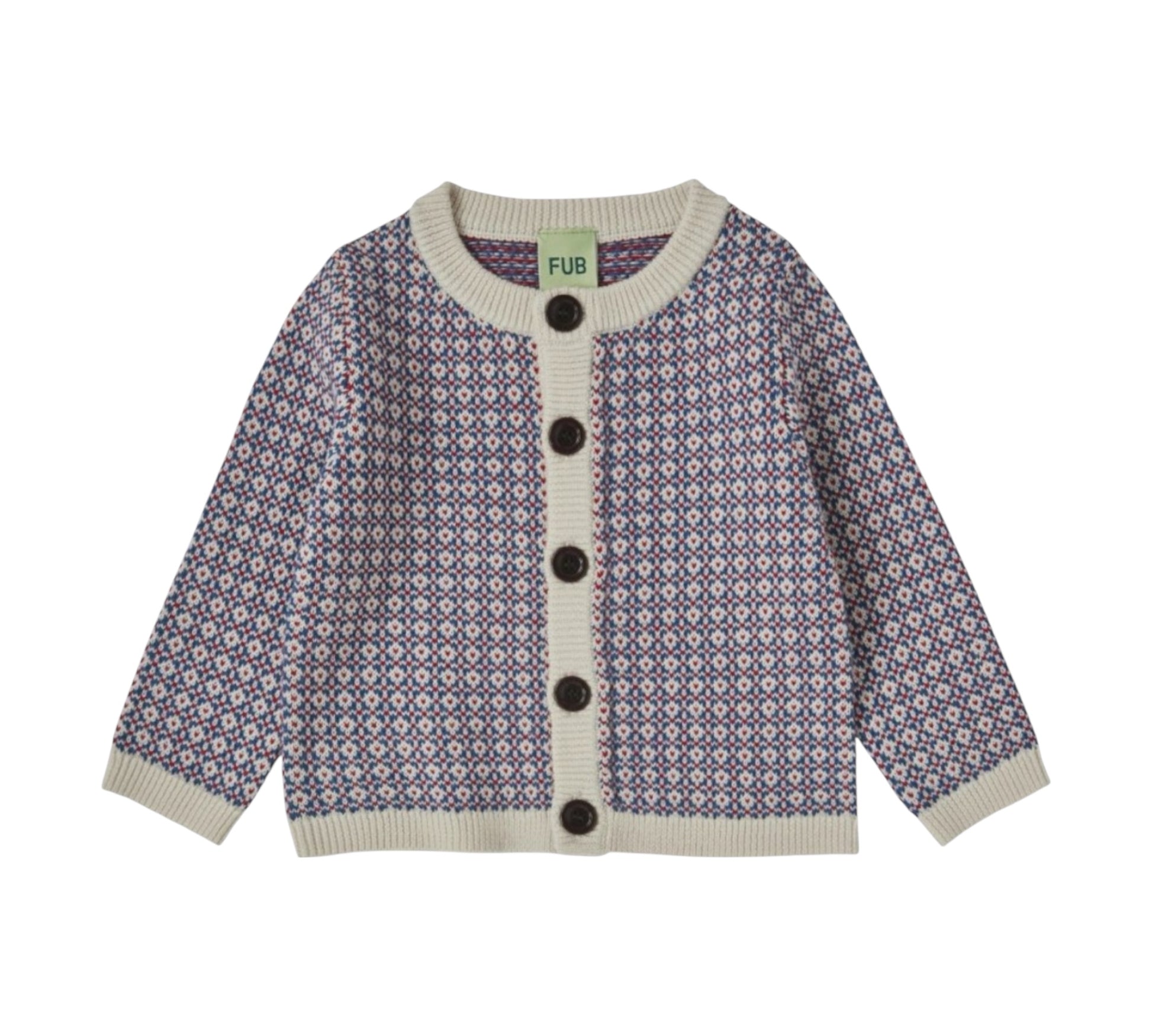 Cardigan aus Merinowolle von Fub, Gr. 56-92, Farbe: ecru/ blue/ red