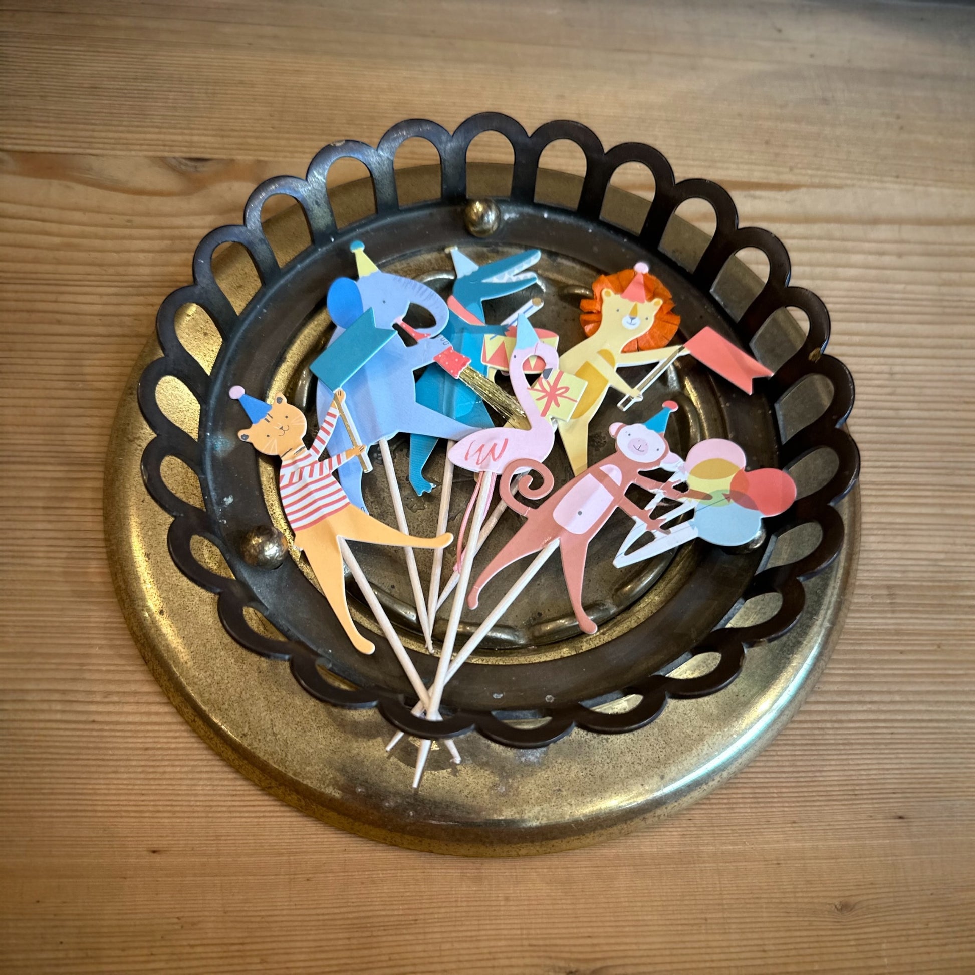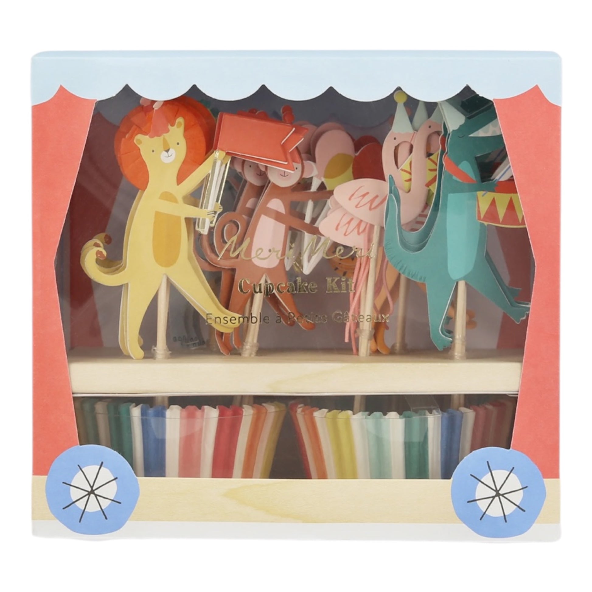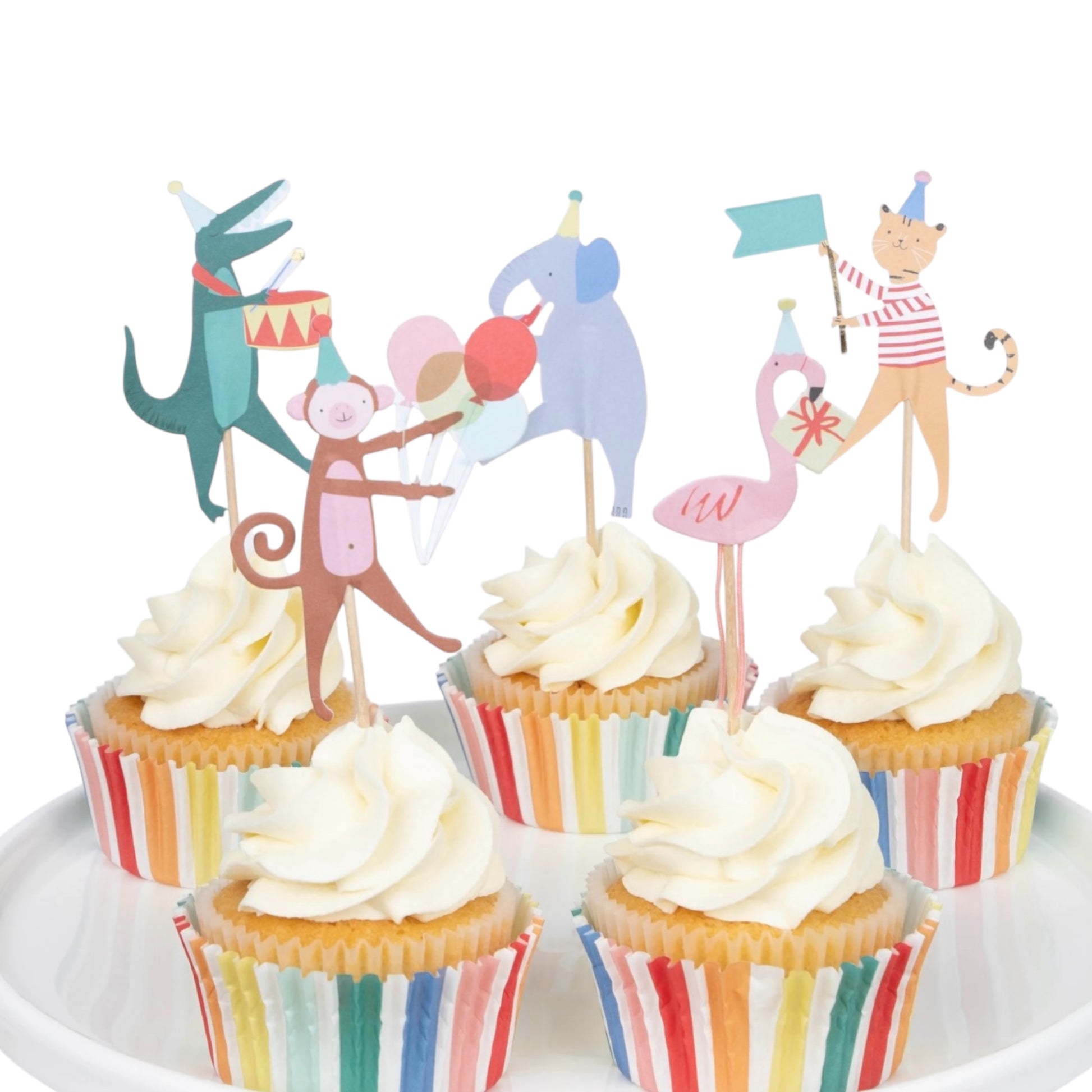 Mit dem Cupcake Set „Tierparade“ von Meri Meri können Sie sich von langweiligen Cupcakes verabschieden und eine farbenfrohe Tierparade auf Ihrem Kuchentisch zaubern. Die 24 einzigartigen Topper und die gestreiften Förmchen sind perfekt für Kindergeburtstage oder Babypartys und werden auf unseren Animal Parade-Tellern noch besser präsentiert. Die Topper bestehen aus hochwertigen Materialien, wie Mylar-Fäden, Wachsschnur und Seidenpapier, und lassen sich in 6 verschiedenen Designs bewundern. Mit den Cocktailspießen aus Holz können Sie Ihre Kreationen stabilisieren und in der bezaubernden, zirkuswagenförmigen Box aufbewahren. Eine tolle Ergänzung für jede Feier! Maße: 64 x 32 x 64 mm.