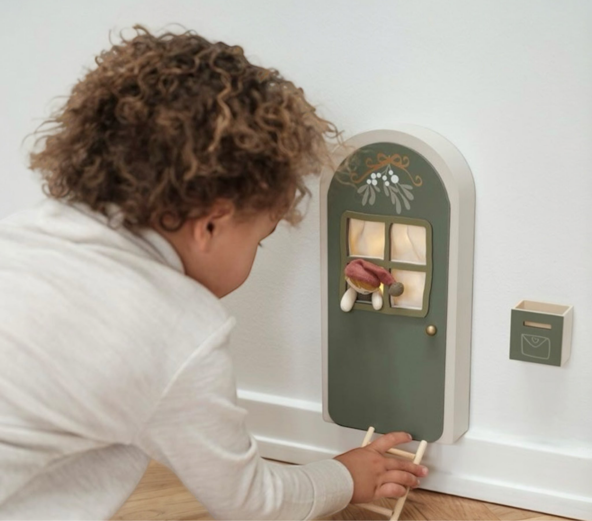 Verleihen Sie dem Kinderzimmer weihnachtlichen Zauber mit der Fabelab Elfentür. Mit ihrer kontrastreichen, grünen Farbe und den liebevollen Details wie der Leiter und dem Postkasten für Weihnachtspost wird sie zum Highlight. Dank des LED-Lichts, das für eine stimmungsvolle Atmosphäre sorgt, wird die Fantasie der Kinder angeregt. Hergestellt aus hochwertigem Speerholz und Bambus.