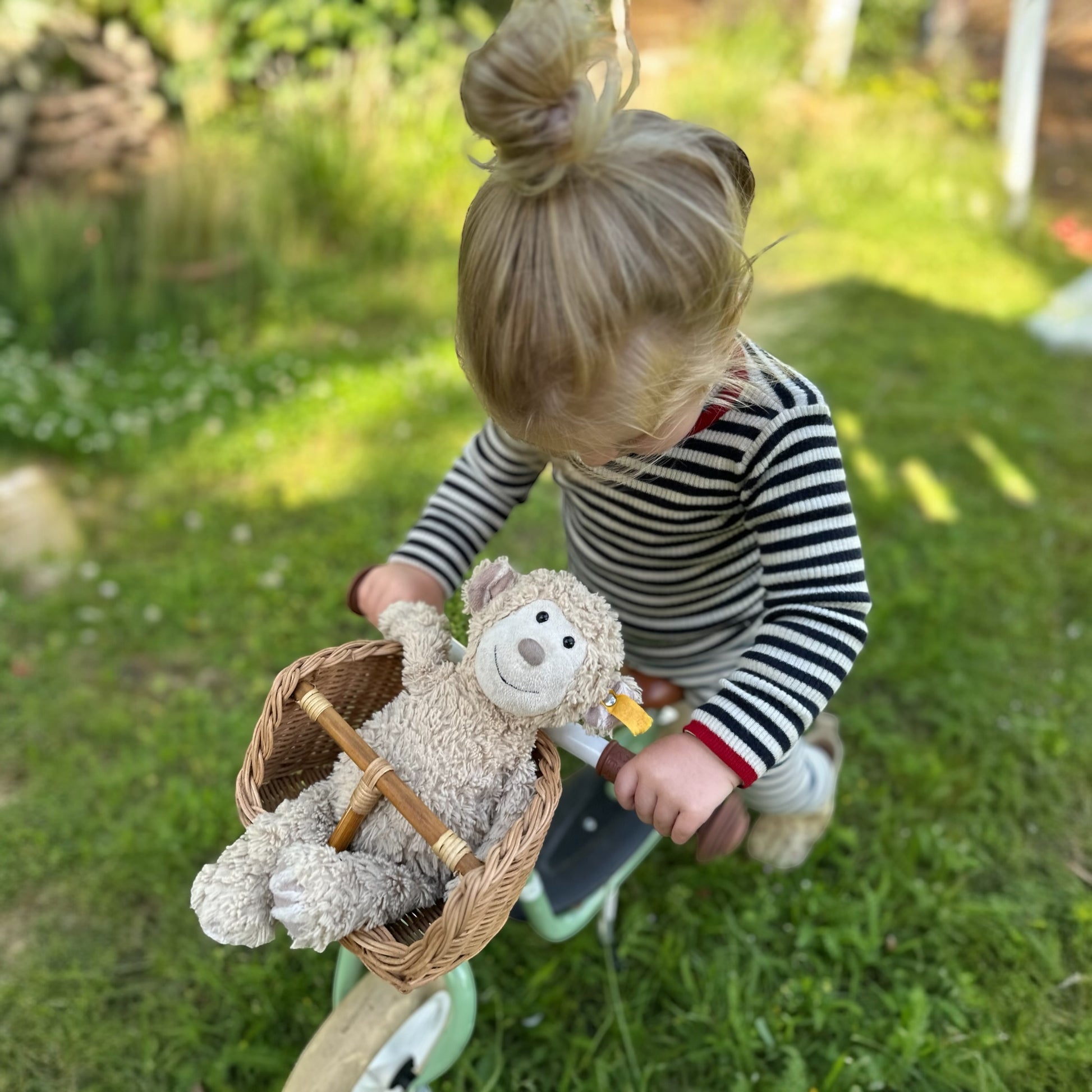 Der handgewebte Fahrradkorb / Rücksack ist multifunktional und ein Muss für jede Fahrradtour. Mit dem Korb können Puppen und Kuscheltiere problemlos mitgenommen werden und sorgen somit für noch mehr Spielspaß unterwegs. Der Korb kann auch als Puppenstuhl im Kinderzimmer genutzt werden. Aus robustem Rattan und Bambus gefertigt, ist er zudem langlebig und sicher dank der Baumwollgurte. Empfohlen ab 3 Jahren.
