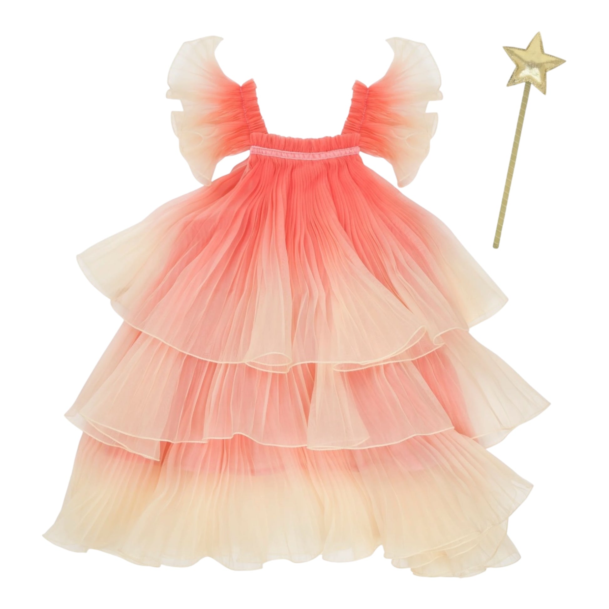 Das Fee Kostüm von Meri Meri ist der Traum aller Mädchen! Das plissierte Kleid in Rosa und Beige hat breite, gerüschte Schultern und einen mehrschichtigen Rock, für einen zauberhaften Effekt. Mit dem goldenen Stern-Zauberstab und den wunderschönen Flügeln, die über eine Schlaufe an den Handgelenken befestigt werden können, wird jede kleine Fee begeistern! Empfohlen für 3-6 Jährige.