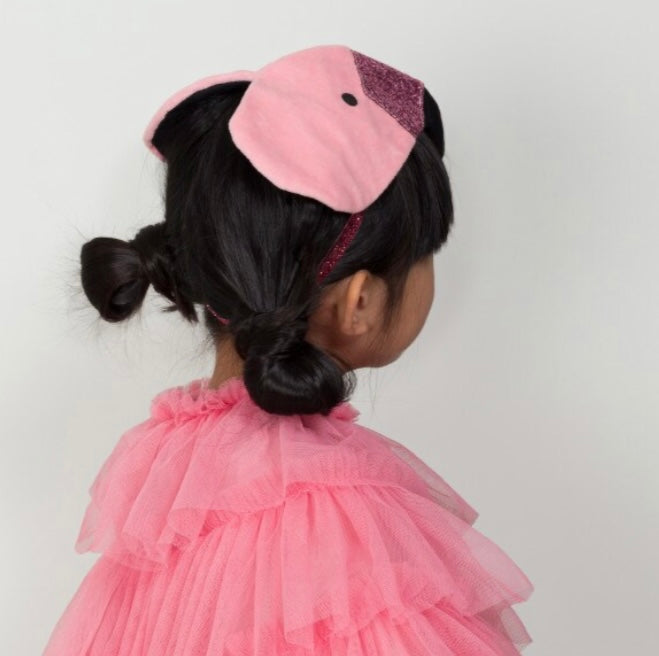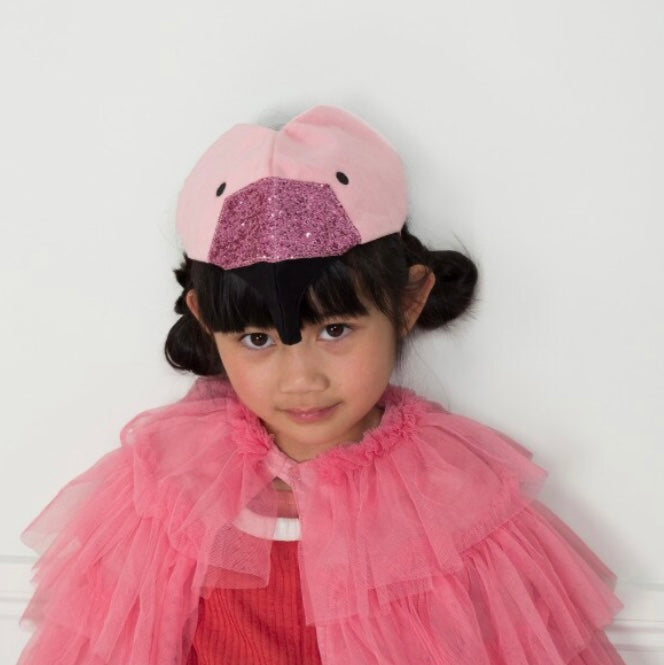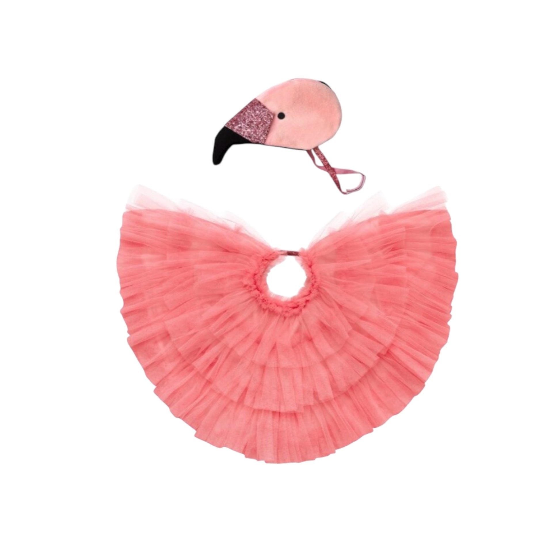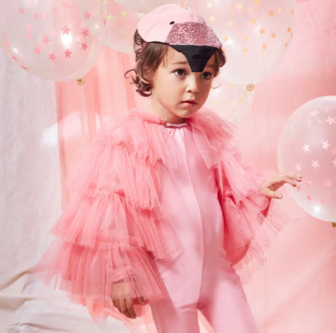 Flamingo Kostüm von Meri Meri mit rosa, mehrschichtigen Tüllflügelumhang lässt sich leicht mit einem Druckknopfverschluss schließen. Die rosa Samtkrone sitzt bequem dank des glitzernden Gummibands. Mit niedlichen gestickten Details und glitzerndem Stoff verziert. Geeignet für Kinder im Alter von 3-6 Jahren.
