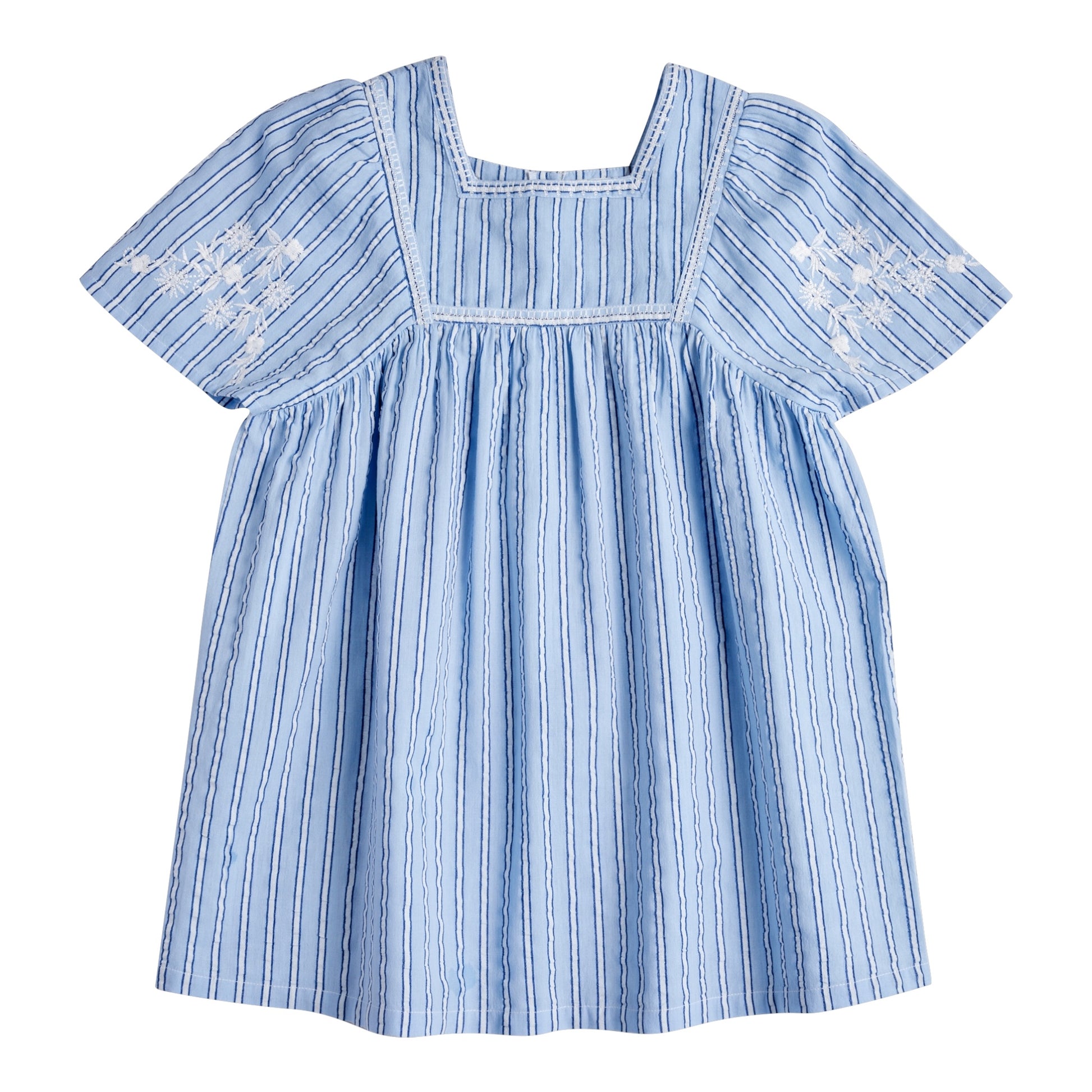 Das gestreifte Kleid von Bonheur du jour Paris ist aus 100% Baumwolle gefertigt, ist es sanft zur Haut und perfekt für jede Gelegenheit. Die liebevolle Blumenstickerei verleiht dem Kleid eine charmante Note.