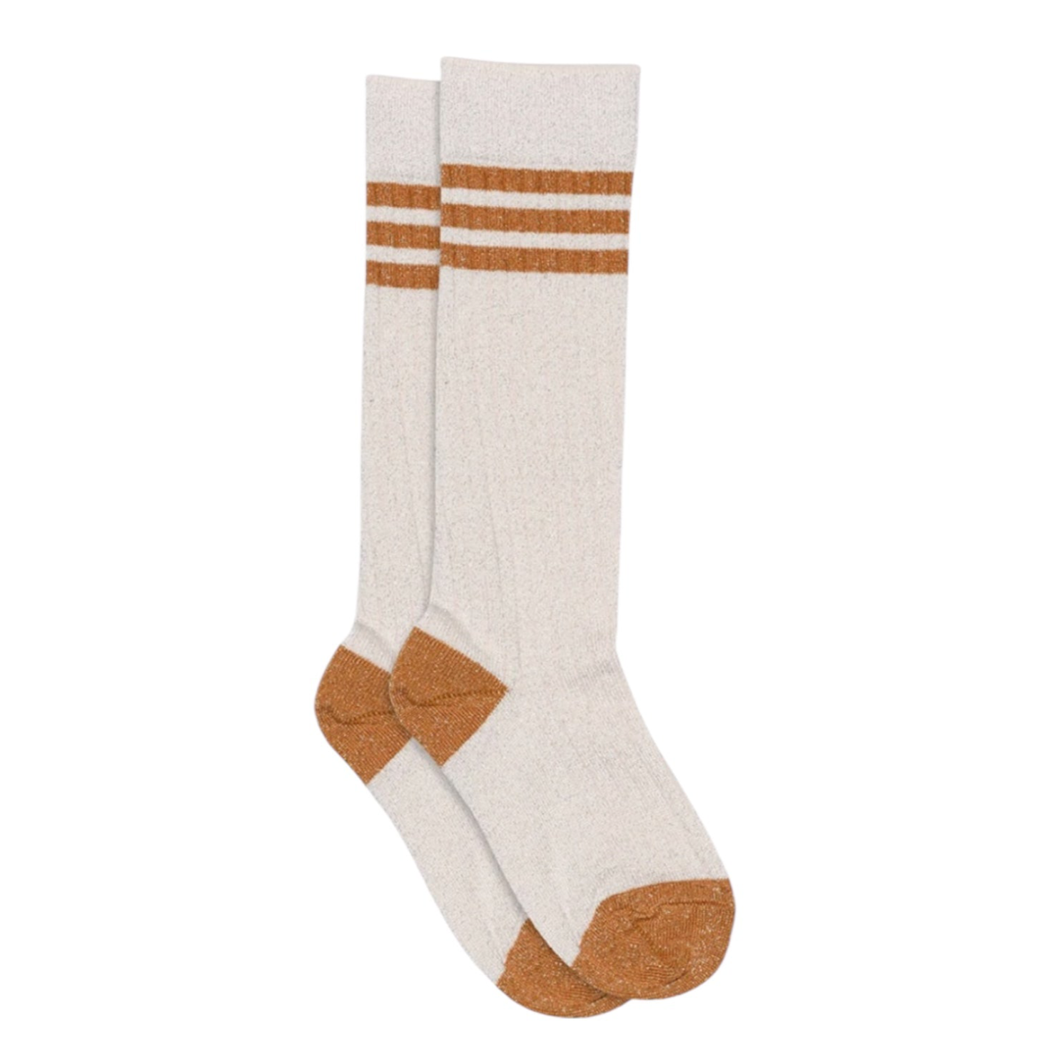 Diese Glitzer Kniestrümpfe von mpKids sind aus weicher Baumwolle gestrickt und verfügen über eine Rippenstruktur sowie Fersen-, Zehen- und Zierstreifen in Kontrastfarben. Durch das spezielle Design liegen sie angenehm am Kinderfuß. Die verstärkte Ferse und Zehen sowie die anatomisch korrekte Ferse mit einem 90°-Winkel sorgen für eine optimale Passform. Entworfen in Dänemark und hergestellt in Lettland sind sie zudem OEKO-TEX® STANDARD 100 zertifiziert.