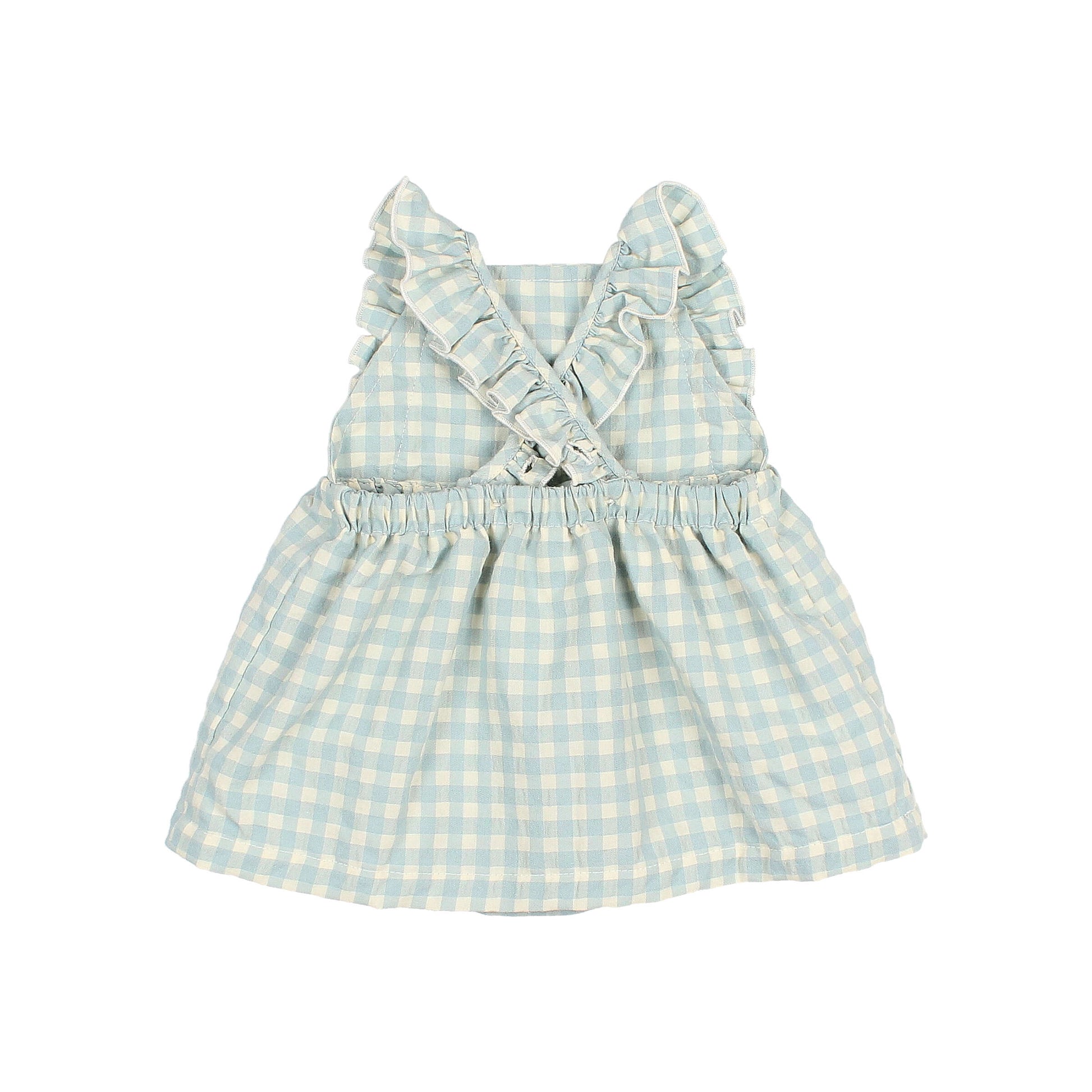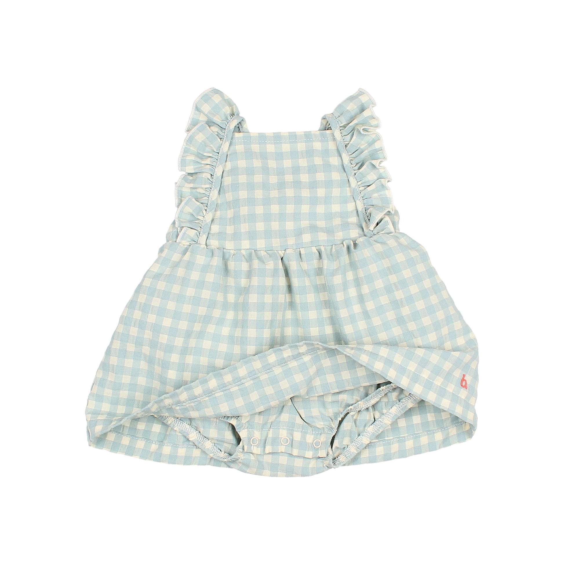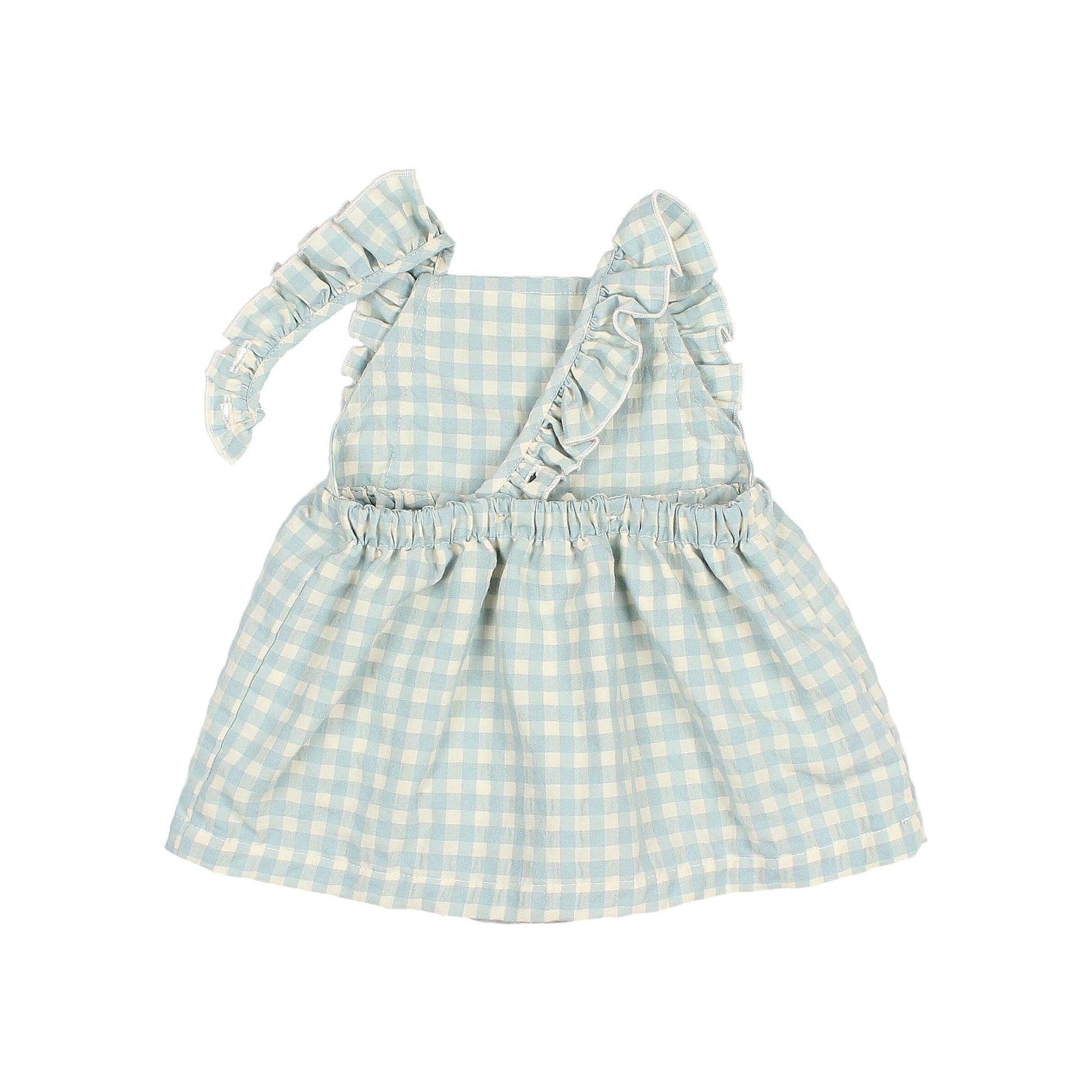 Das Karokleid von Búho kombiniert Komfort und Funktionalität. Hergestellt aus 60% organic Baumwolle und 40% recyceltem Polyester, bietet es Bewegungsfreiheit. Die Rüschenträger und der elastische Rücken ermöglichen ein einfaches Ankleiden, während der Seersucker-Stoff den Tragekomfort erhöht.