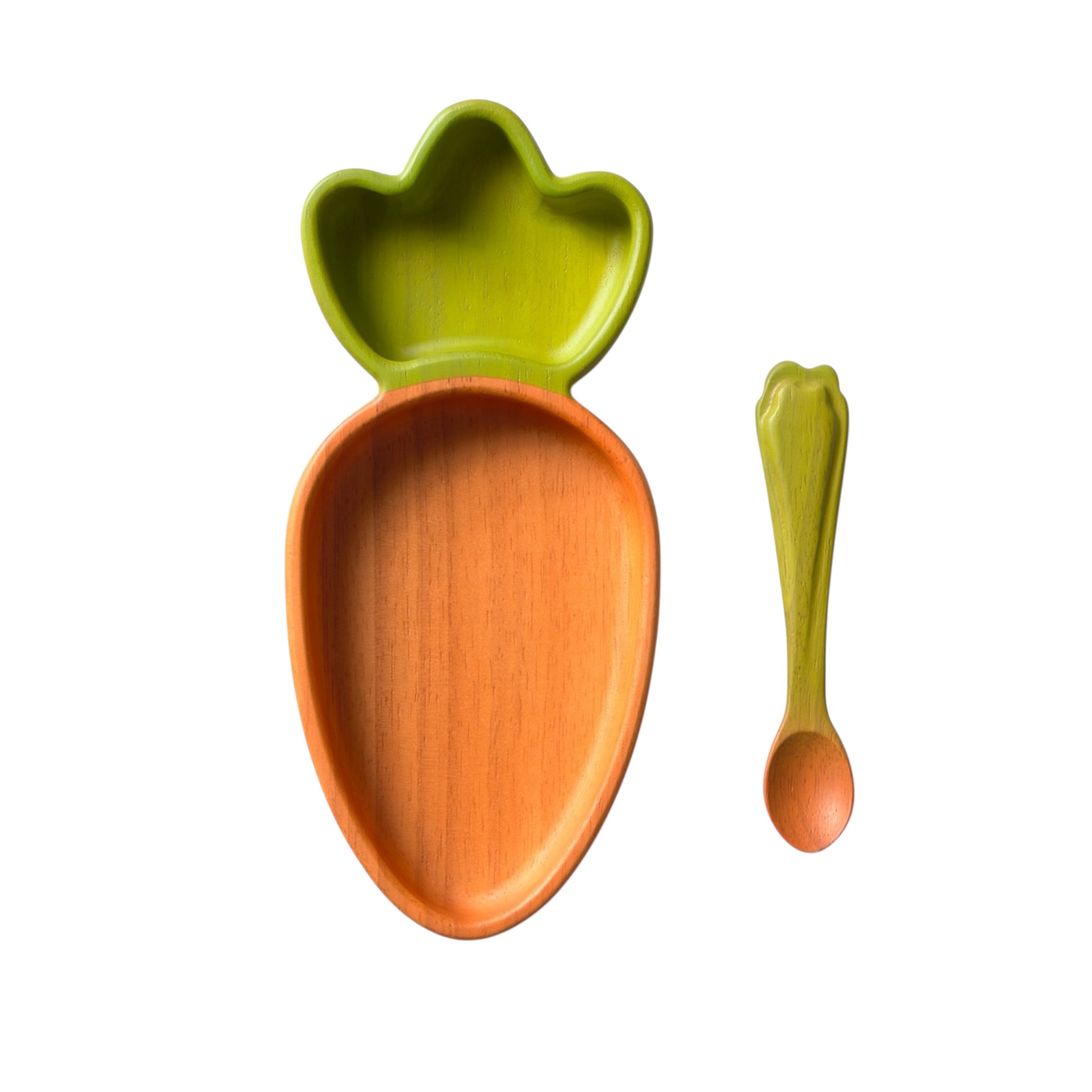 Karotte Teller und Löffel aus Hevea-Holz von Oli & Carol