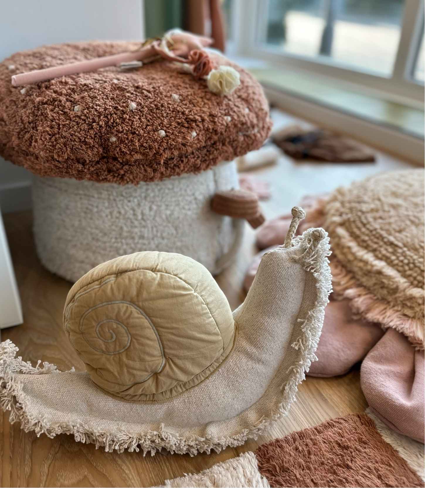 Hol dir das Kissen "Schnecke" von Lorena Canals! Kinder lieben Schnecken und dieses bezaubernde Kissen ist ein treuer Begleiter zum Spielen und Verschönern des Zimmers.