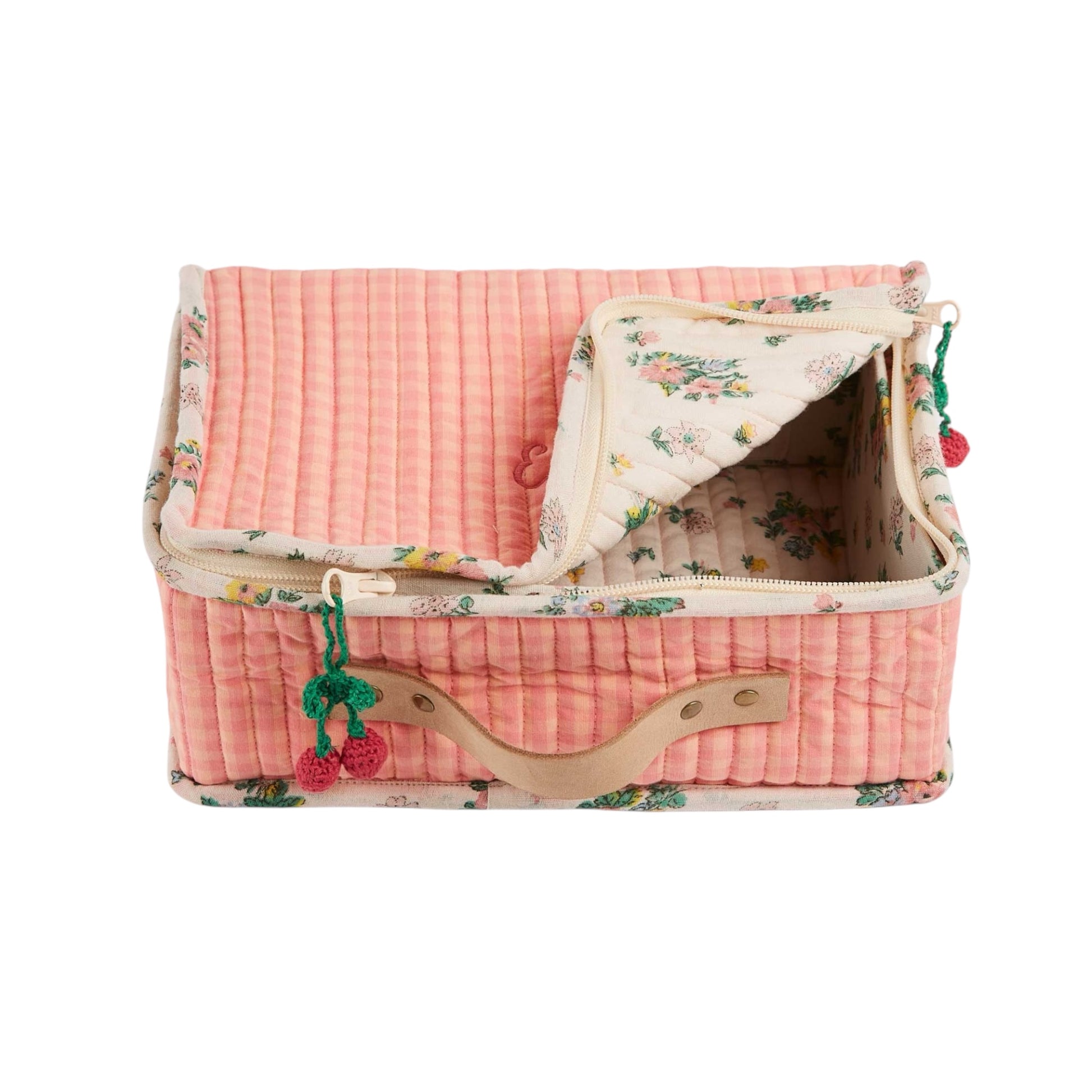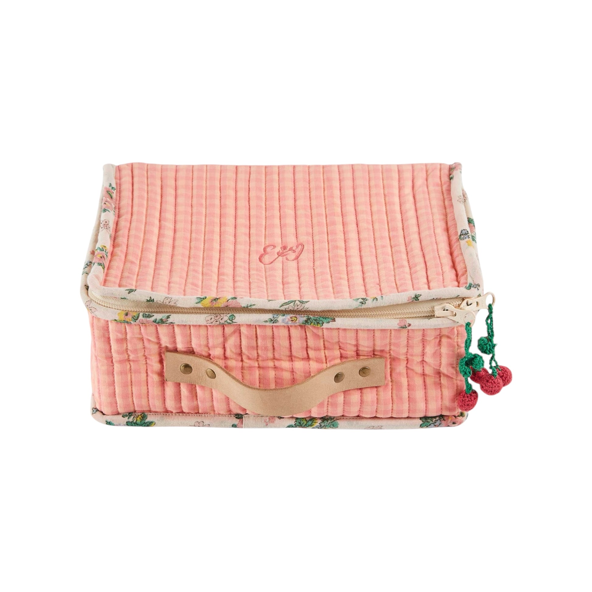 Der Kofferchen von Emile et Ida ist aus rosa Gingham gesteppter Baumwolle gefertigt und bietet den perfekten Versteck für die Schätze eurer Kleinen. Mit seinem federleichten Design und dem genieteten Ledergriff kann er überallhin mitgenommen werden. Der abnehmbare Rahmen sorgt für eine hervorragende Stabilität und das vollständig mit rosa Gingham-Baumwolle gefütterte Innere bietet zusätzlichen Schutz. Die praktischen Obsthaken erleichtern das Öffnen des Reißverschlusses. Mit Abmessungen von 26 x 19 x 9,5 cm und aus 100% Baumwolle ist dieser Kofferchen ein unverzichtbarer Begleiter auf Reisen oder im Alltag.