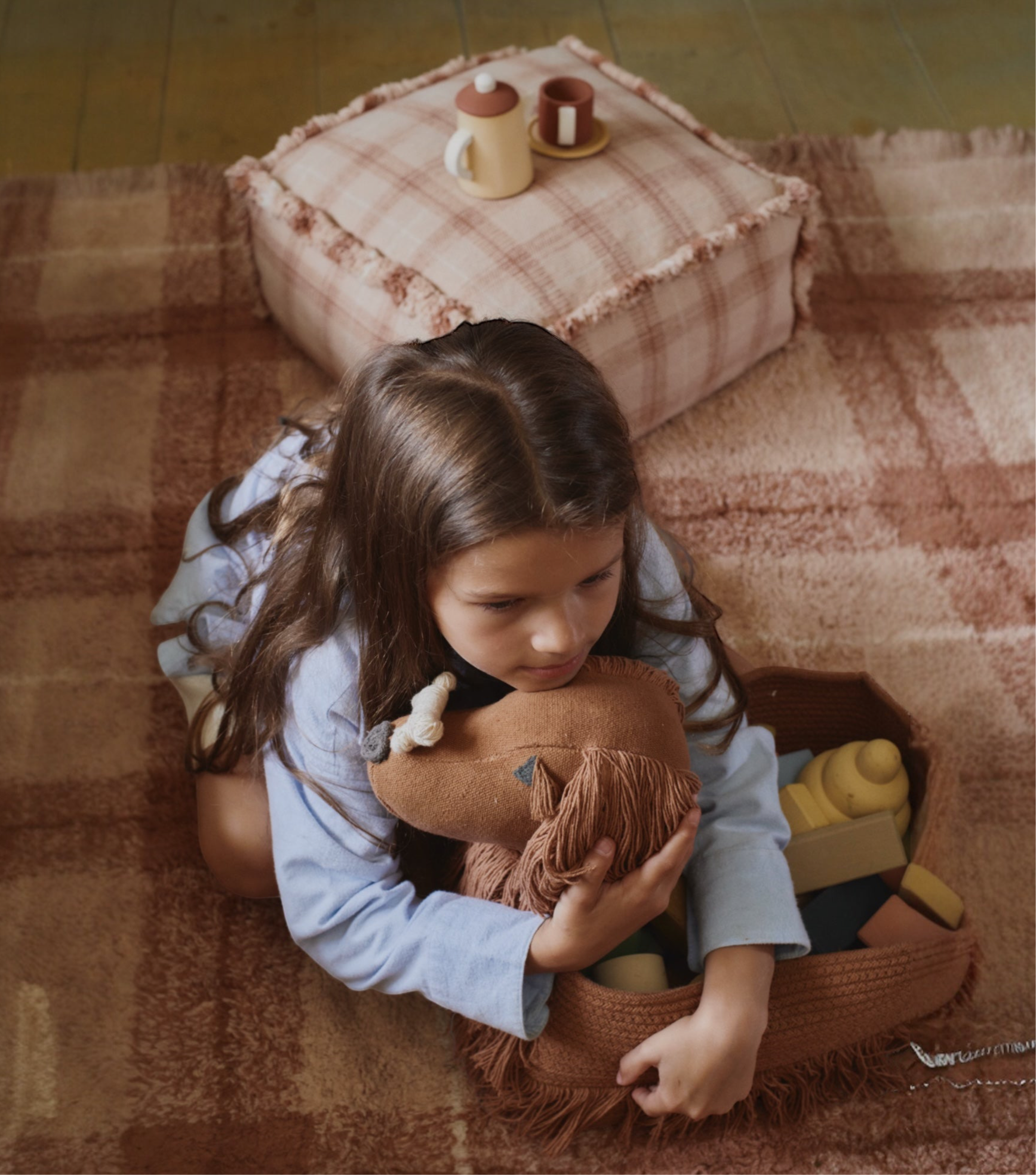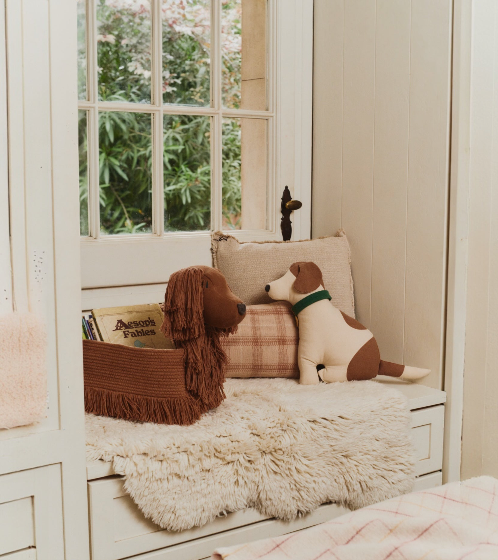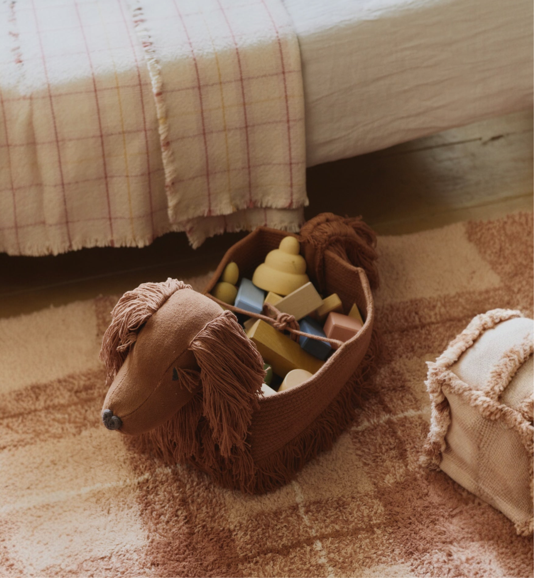 Lerne Poppy und ihren flauschigen Schwanz kennen! Der handgefertigte Korb "Poppy" von Lorena Canals ist von der Silhouette eines Setters inspiriert. Mit Fransenlagen, gestickten Wimpern und einem Spielzeugknochen ist er perfekt für tierliebe Kinderzimmer. Hergestellt aus 67 % Baumwolle und 33 % Polyesterfasern.