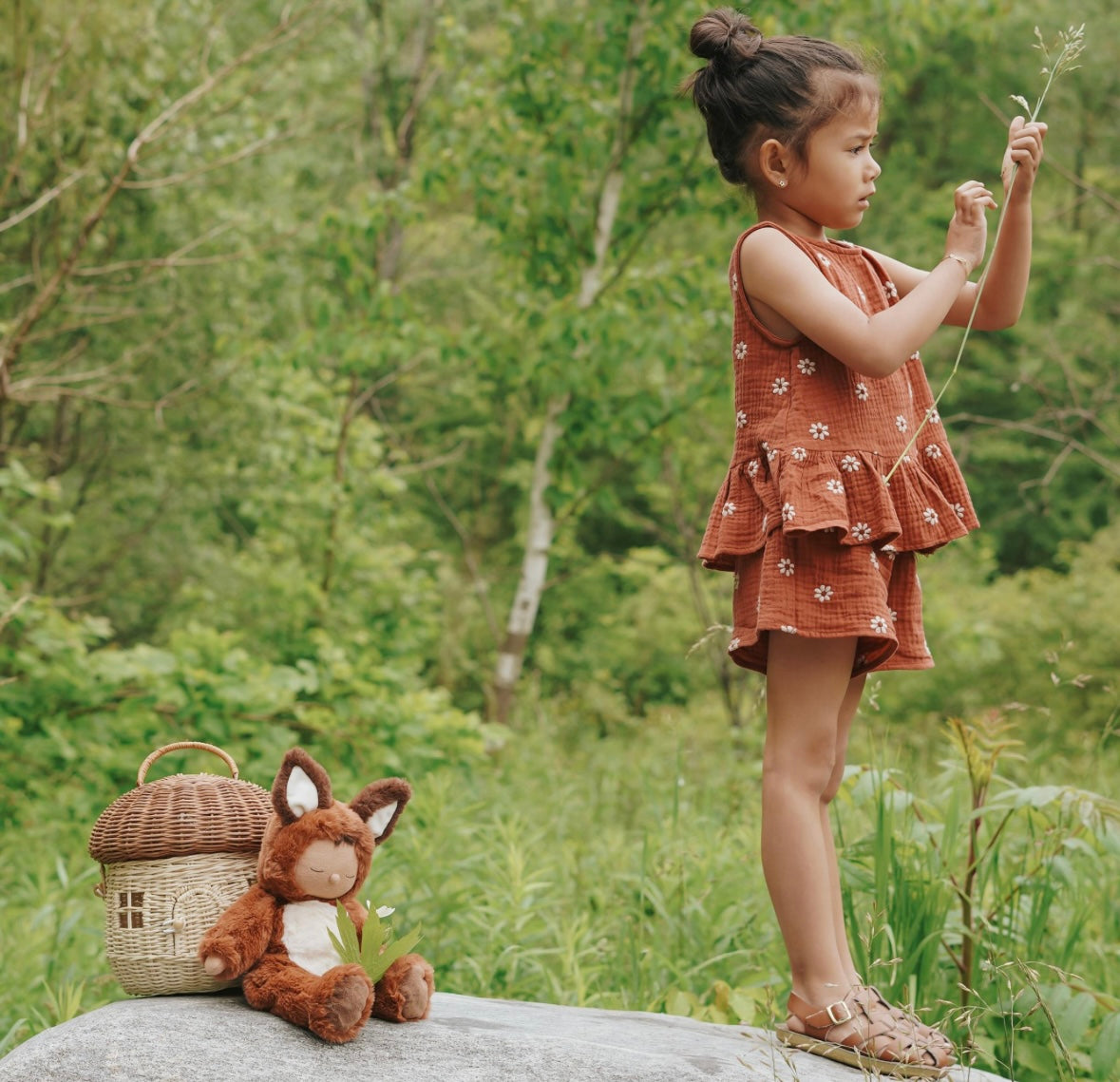 Kuschel-Fuchs von Olliella ist eine perfekte erste Puppe für dein Baby ab der Geburt. Mit einer Größe von ca. 31 cm ist sie extrem weich und vollständig beweglich, ideal zum Kuscheln und Spielen. Die Puppe hat aufgestickte, schlafende Augen und eine süße Knubbelnase, sowie eine kleine Regenbogen-Stickerei auf dem Herzen. Hergestellt ist sie aus einem kuscheligen Plüschanzug, der nicht abnehmbar ist, und einem leichten Gewicht. Das Gesicht und die Hände bestehen aus 100% Baumwolle, der Anzug aus 100% Polyester und die Füllung aus 50% Recyceltes Polyester und 50% Kunststoff-Pellets. Für die richtige Pflege empfehlen wir eine kalte Schonwäsche im Wäschesack.