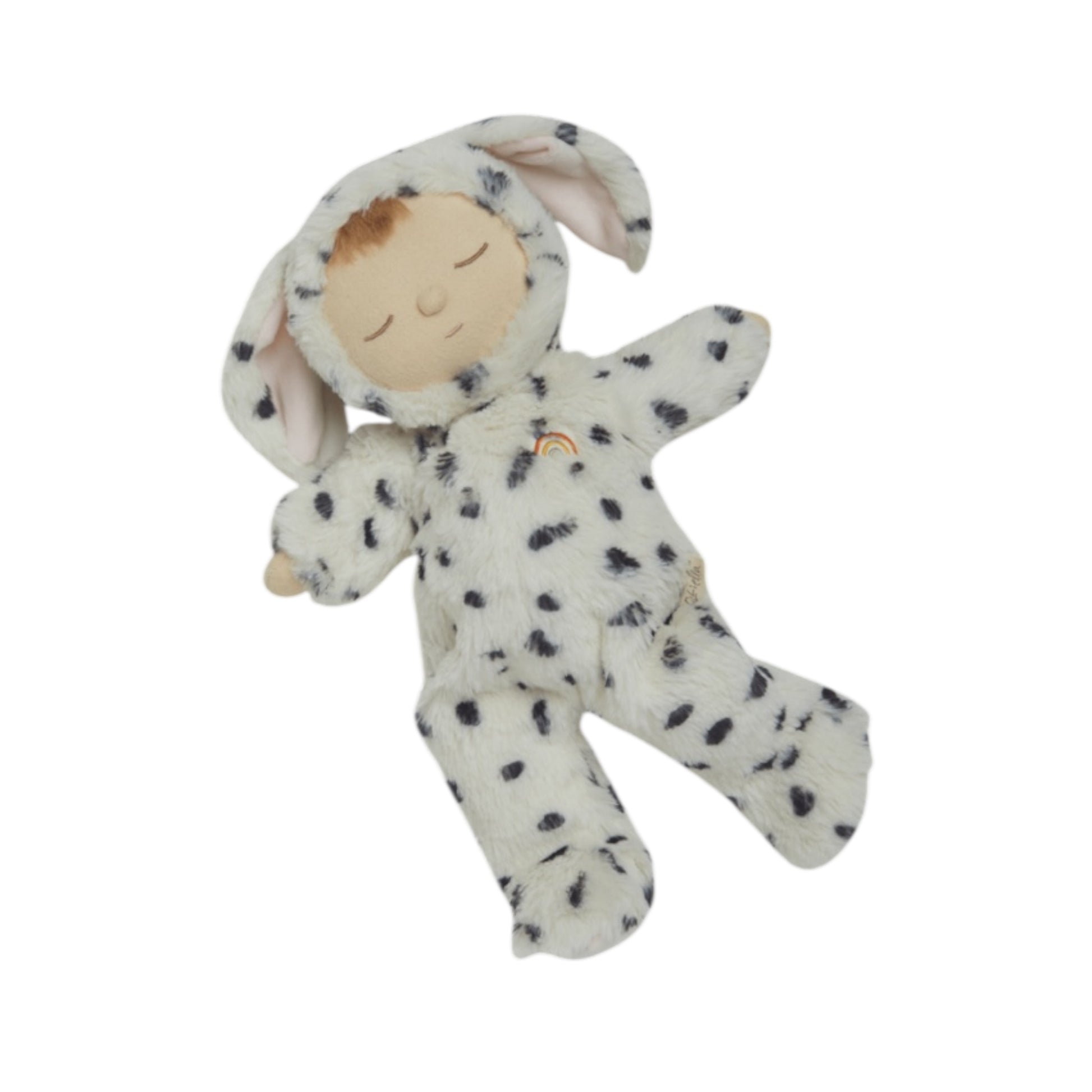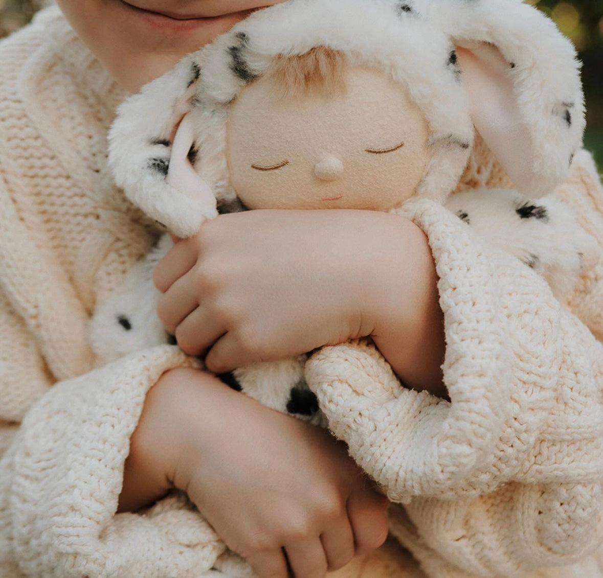 Kuschel-Hund von Olliella ist eine perfekte erste Puppe für dein Baby ab der Geburt. Mit einer Größe von ca. 31 cm ist sie extrem weich und vollständig beweglich, ideal zum Kuscheln und Spielen. Die Puppe hat aufgestickte, schlafende Augen und eine süße Knubbelnase, sowie eine kleine Regenbogen-Stickerei auf dem Herzen. Hergestellt ist sie aus einem kuscheligen Plüschanzug, der nicht abnehmbar ist, und einem leichten Gewicht. Das Gesicht und die Hände bestehen aus 100% Baumwolle, der Anzug aus 100% Polyester und die Füllung aus 50% Recyceltes Polyester und 50% Kunststoff-Pellets. Für die richtige Pflege empfehlen wir eine kalte Schonwäsche im Wäschesack.
