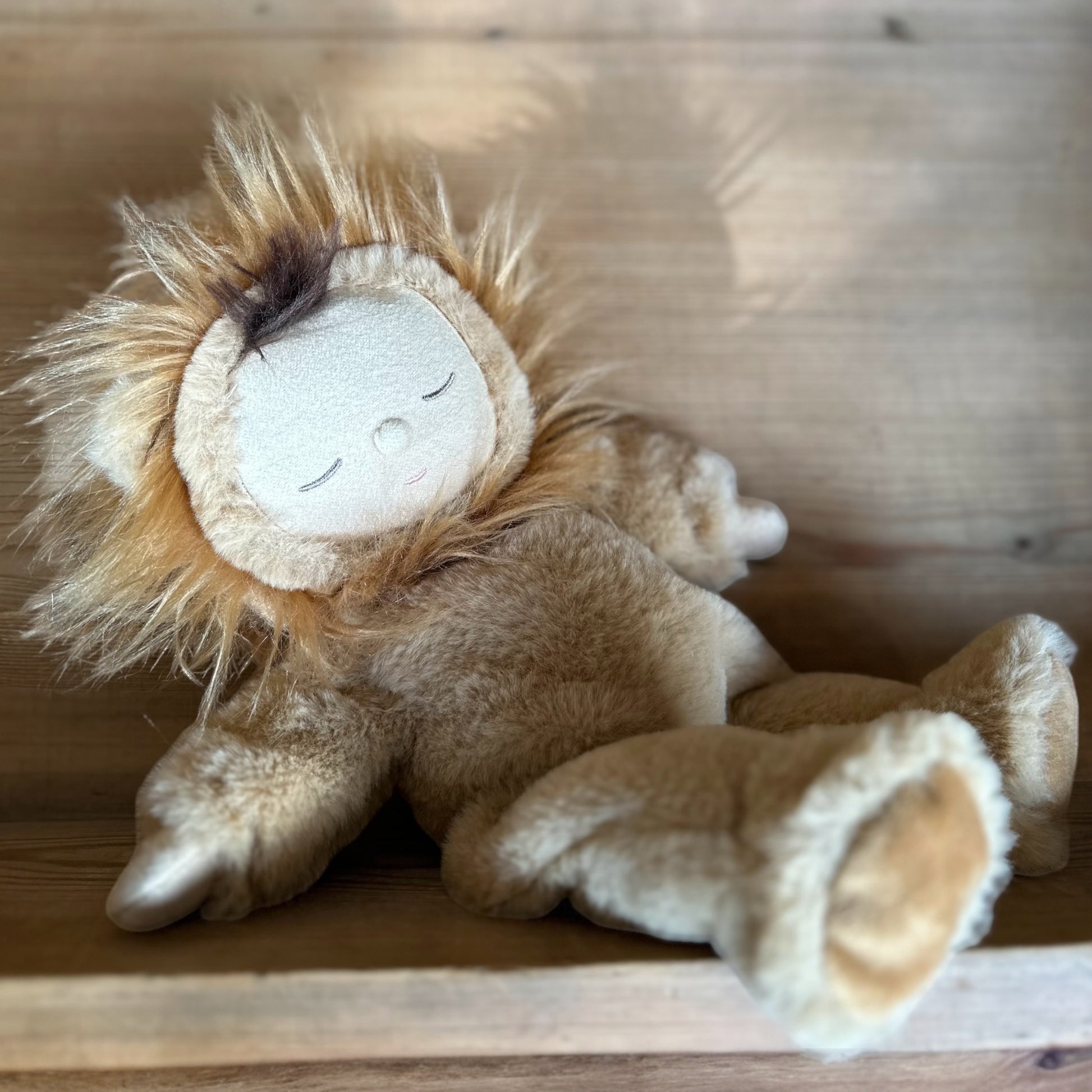 Kuschel-Löwe von Olliella ist eine perfekte erste Puppe für dein Baby ab der Geburt. Mit einer Größe von ca. 31 cm ist sie extrem weich und vollständig beweglich, ideal zum Kuscheln und Spielen. Die Puppe hat aufgestickte, schlafende Augen und eine süße Knubbelnase, sowie eine kleine Regenbogen-Stickerei auf dem Herzen. Hergestellt ist sie aus einem kuscheligen Plüschanzug, der nicht abnehmbar ist, und einem leichten Gewicht. Das Gesicht und die Hände bestehen aus 100% Baumwolle, der Anzug aus 100% Polyester und die Füllung aus 50%Recyceltes Polyester und 50% Kunststoff-Pellets. Für die richtige Pflege empfehlen wir eine kalte Schonwäsche im Wäschesack.