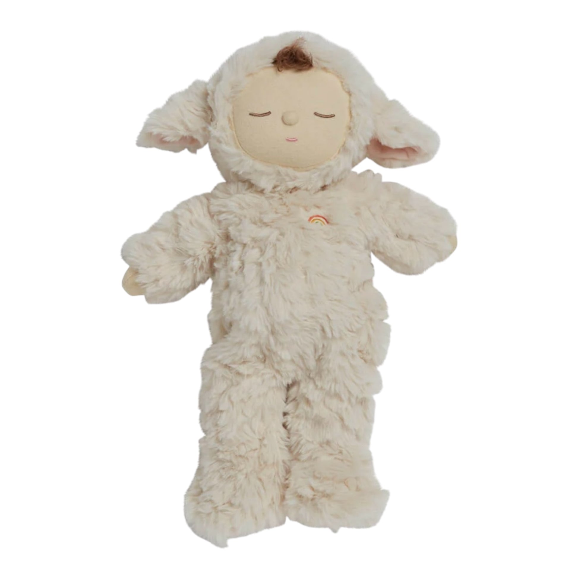 Kuschel-Schäfchen von Olliella ist eine perfekte erste Puppe für dein Baby ab der Geburt. Mit einer Größe von ca. 31 cm ist sie extrem weich und vollständig beweglich, ideal zum Kuscheln und Spielen. Die Puppe hat aufgestickte, schlafende Augen und eine süße Knubbelnase, sowie eine kleine Regenbogen-Stickerei auf dem Herzen. Hergestellt ist sie aus einem kuscheligen Plüschanzug, der nicht abnehmbar ist, und einem leichten Gewicht. Das Gesicht und die Hände bestehen aus 100% Baumwolle, der Anzug aus 100% Polyester und die Füllung aus 50% Recyceltes Polyester und 50% Kunststoff-Pellets. Für die richtige Pflege empfehlen wir eine kalte Schonwäsche im Wäschesack.