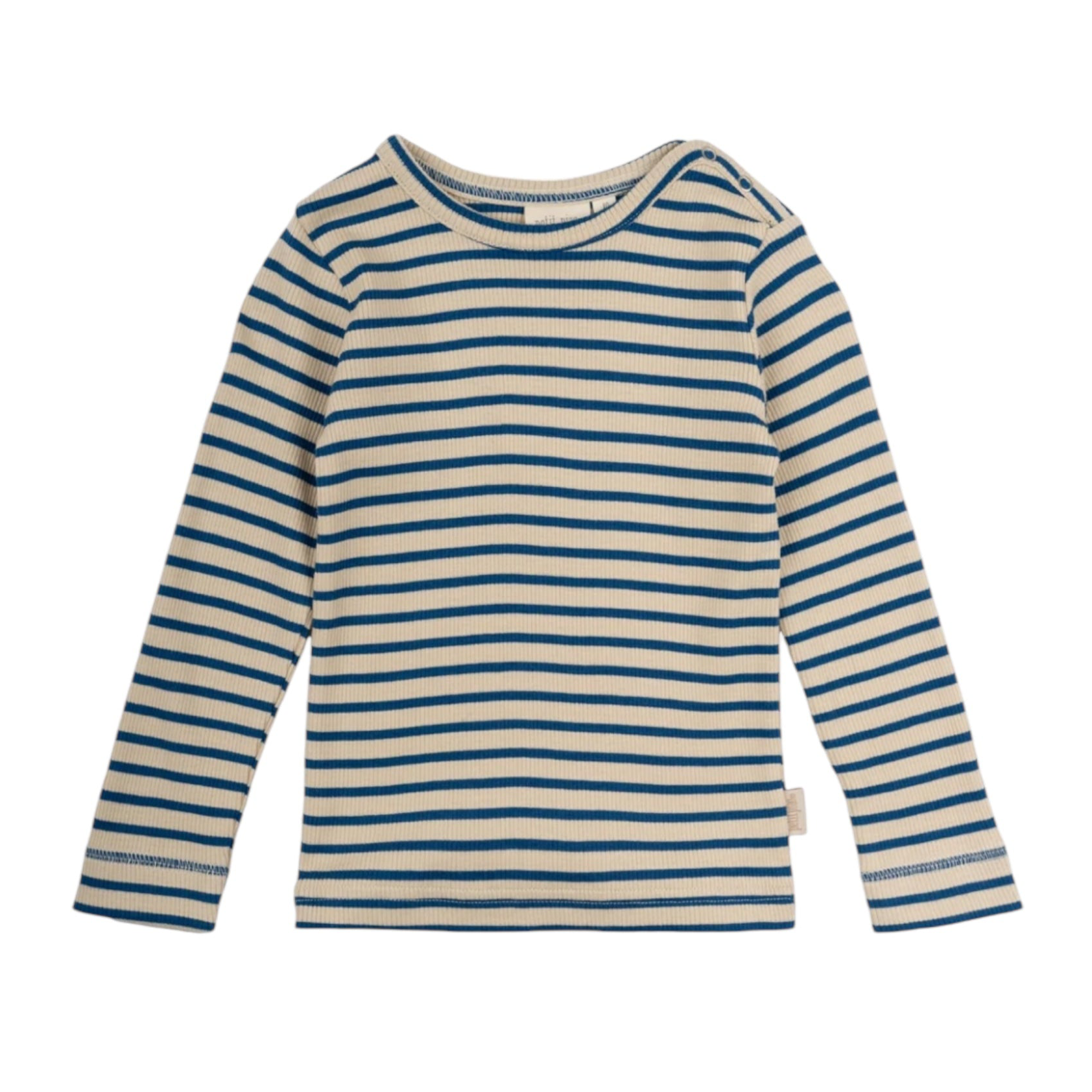 Das gestreifte Langarm-Shirt von Petit Piao ist aus Bio-Baumwolle und Modal gefertigt. Die klassischen Streifen in tiefem Kobaltblau und Offwhite verleihen dem Shirt einen zeitlosen Look.