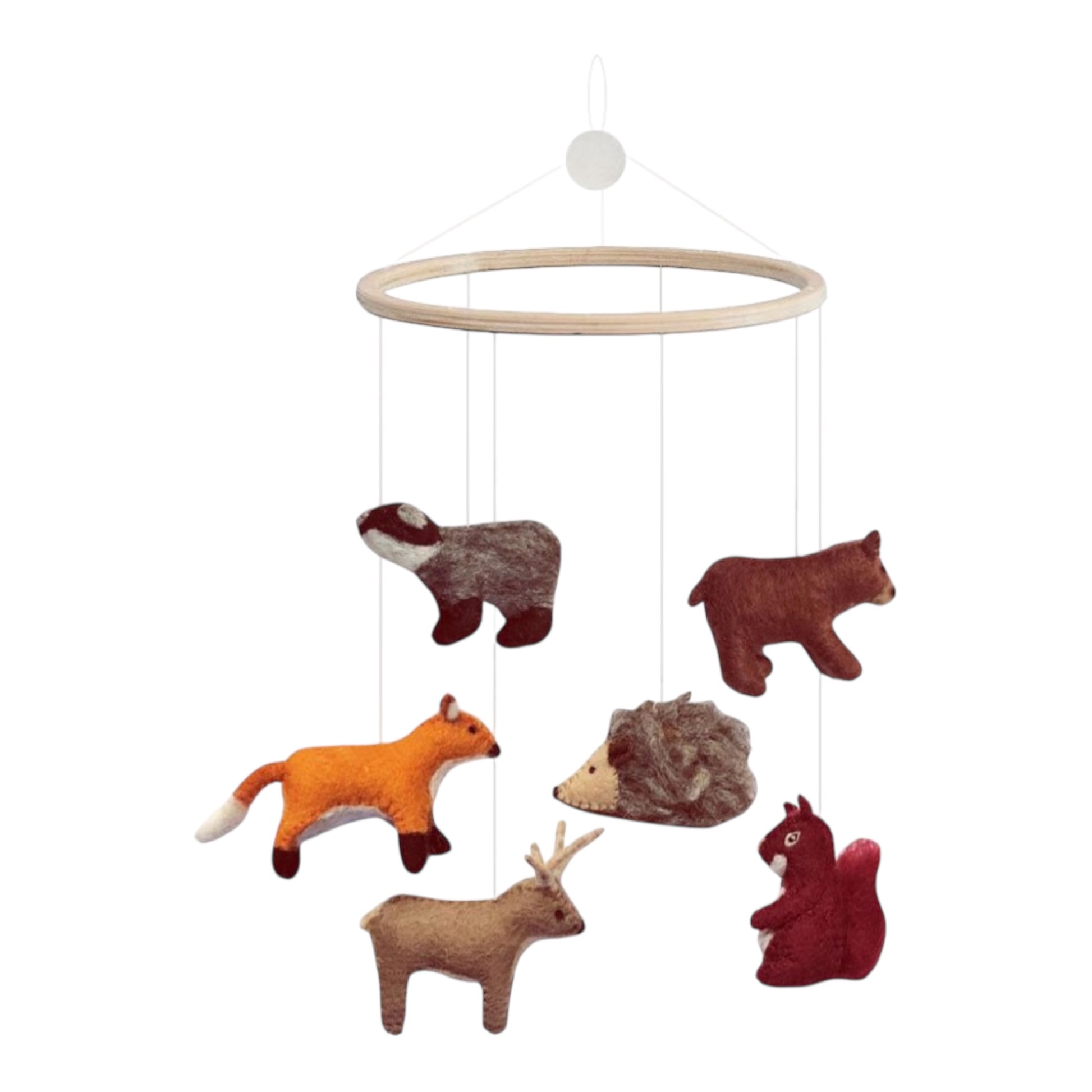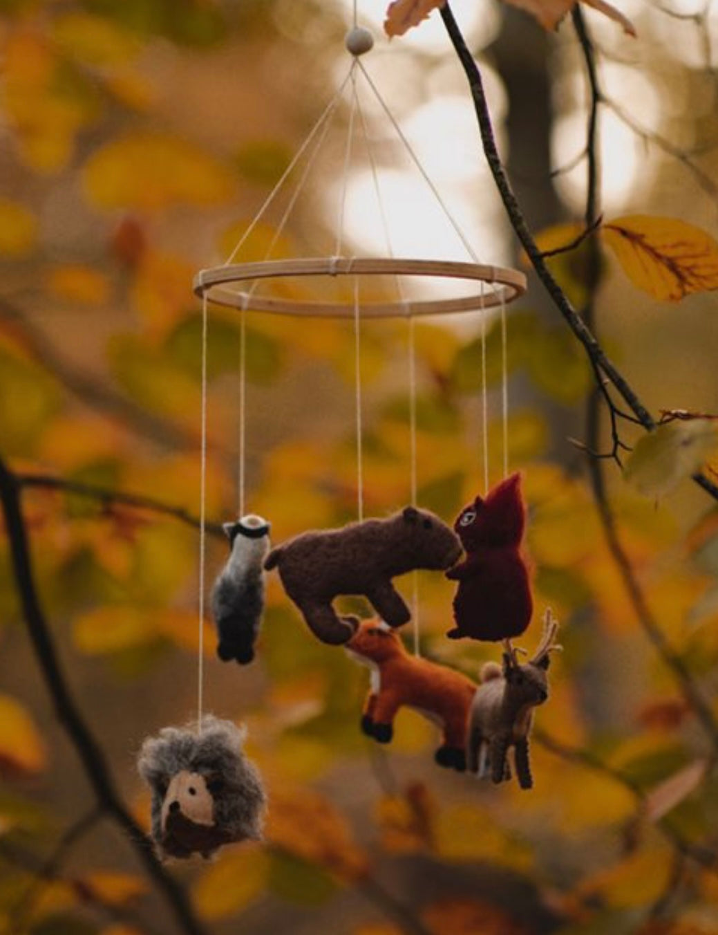 Das mobile Waldtiere von Gamcha ist ein handgefertigtes, einzigartiges und liebevoll gestaltetes Baby-Mobile. Perfekt als Geschenk für eine Babyparty, Geburtstag oder als Überraschung für werdende Eltern. Die niedlichen Waldtiere sorgen für eine entspannte Atmosphäre und fördern die Sinnesentwicklung des Babys. Hergestellt aus neuseeländischer Wolle und gefüllt mit recyceltem Polyester.