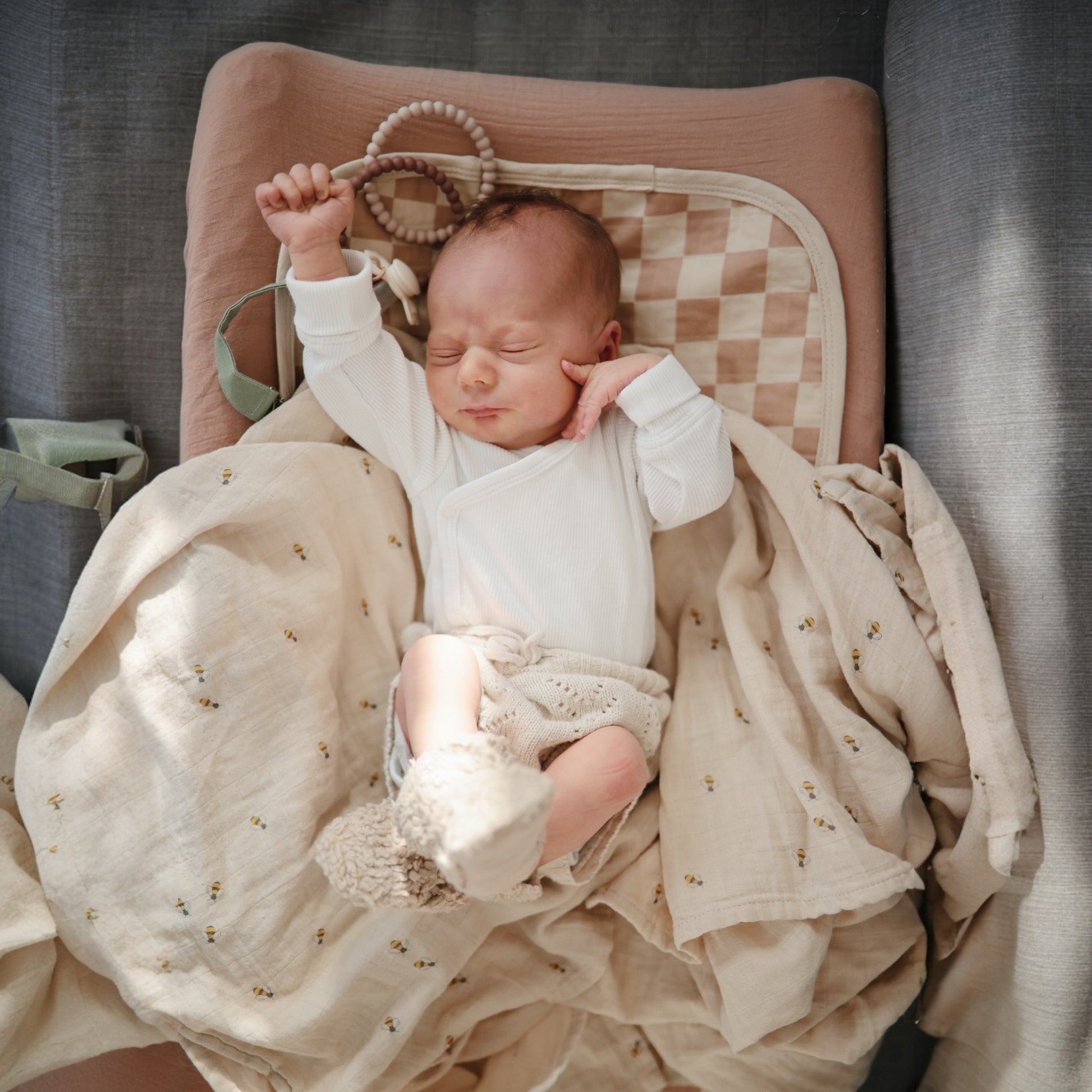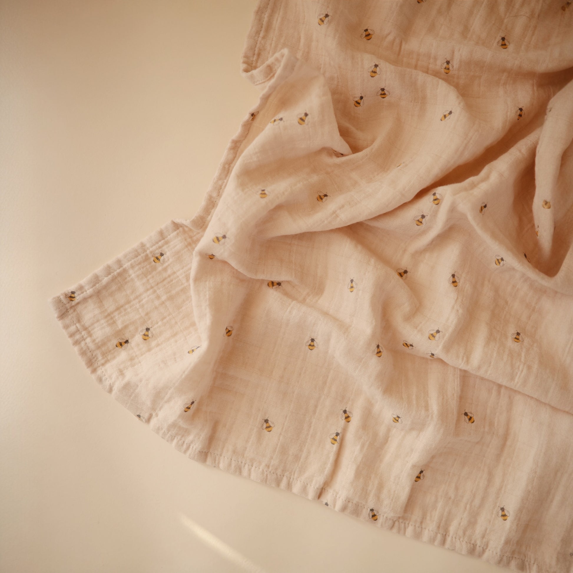Musselintuch Bienchen aus Biobaumwolle von Mashie, 120x120cm