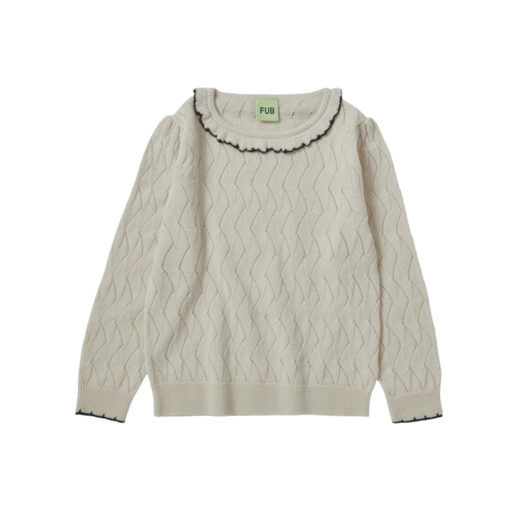 Pointelle Pullover von Fub aus 100% Merinowolle, Gr. 100-150, Farbe: ecru