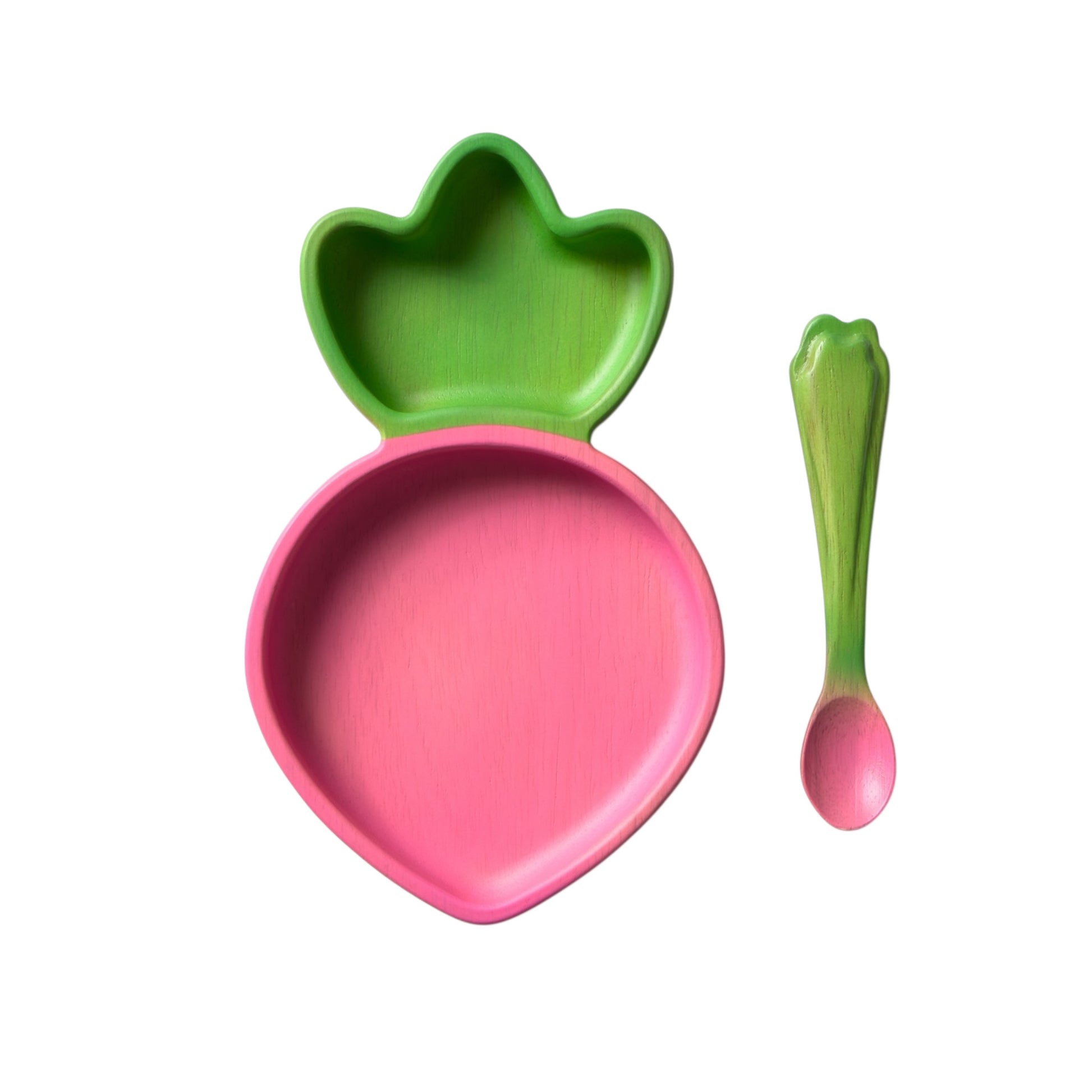 Radieschen Teller und Löffel aus Hevea-Holz von Oli & Carol