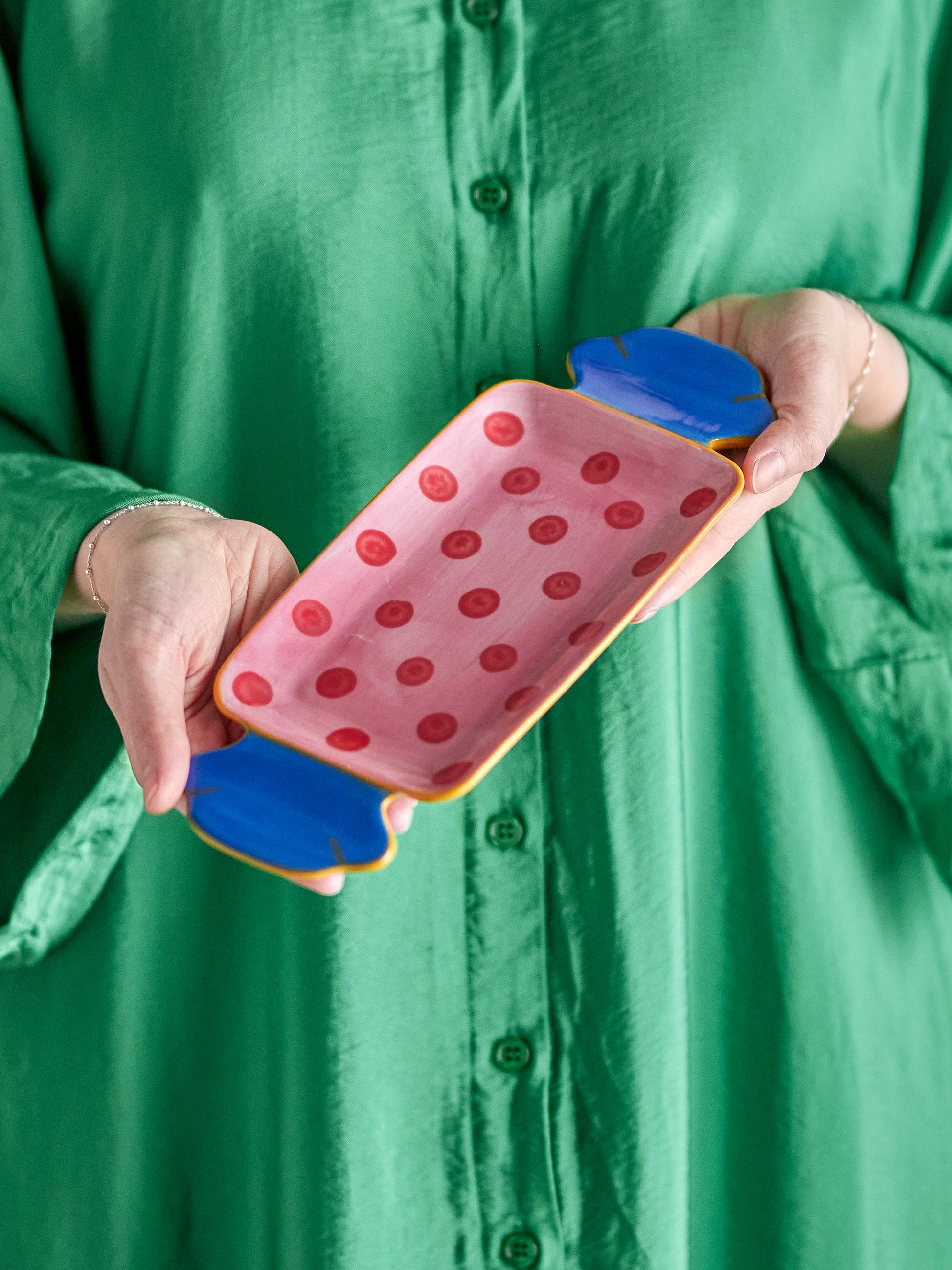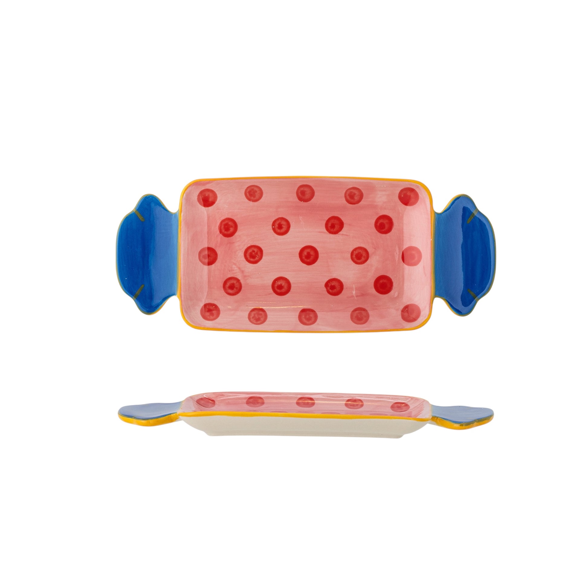Die handbemalte Rosa Caramella Servierplatte von Bloomingville ist einzigartig geformt wie ein Karamell und verleiht jeder Mahlzeit einen verspielten und farbenfrohen Touch. Mit lebendigen Farben und einem auffälligen Design schafft sie eine festliche Atmosphäre für jeden Anlass. Ein absolutes Must-Have für alle, die ihren Esstisch mit Stil und Individualität dekorieren möchten. Hergestellt aus hochwertigem Steingut für langlebige Qualität.