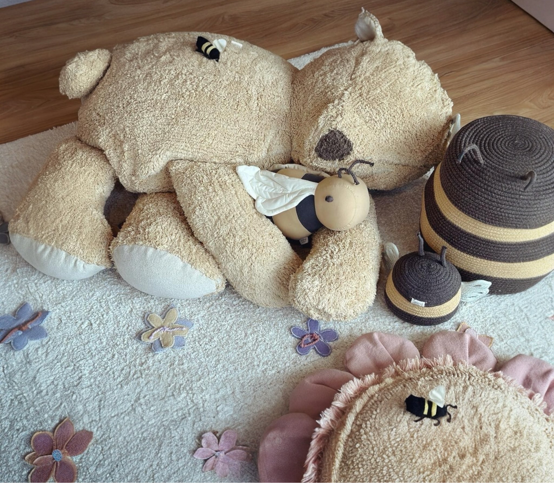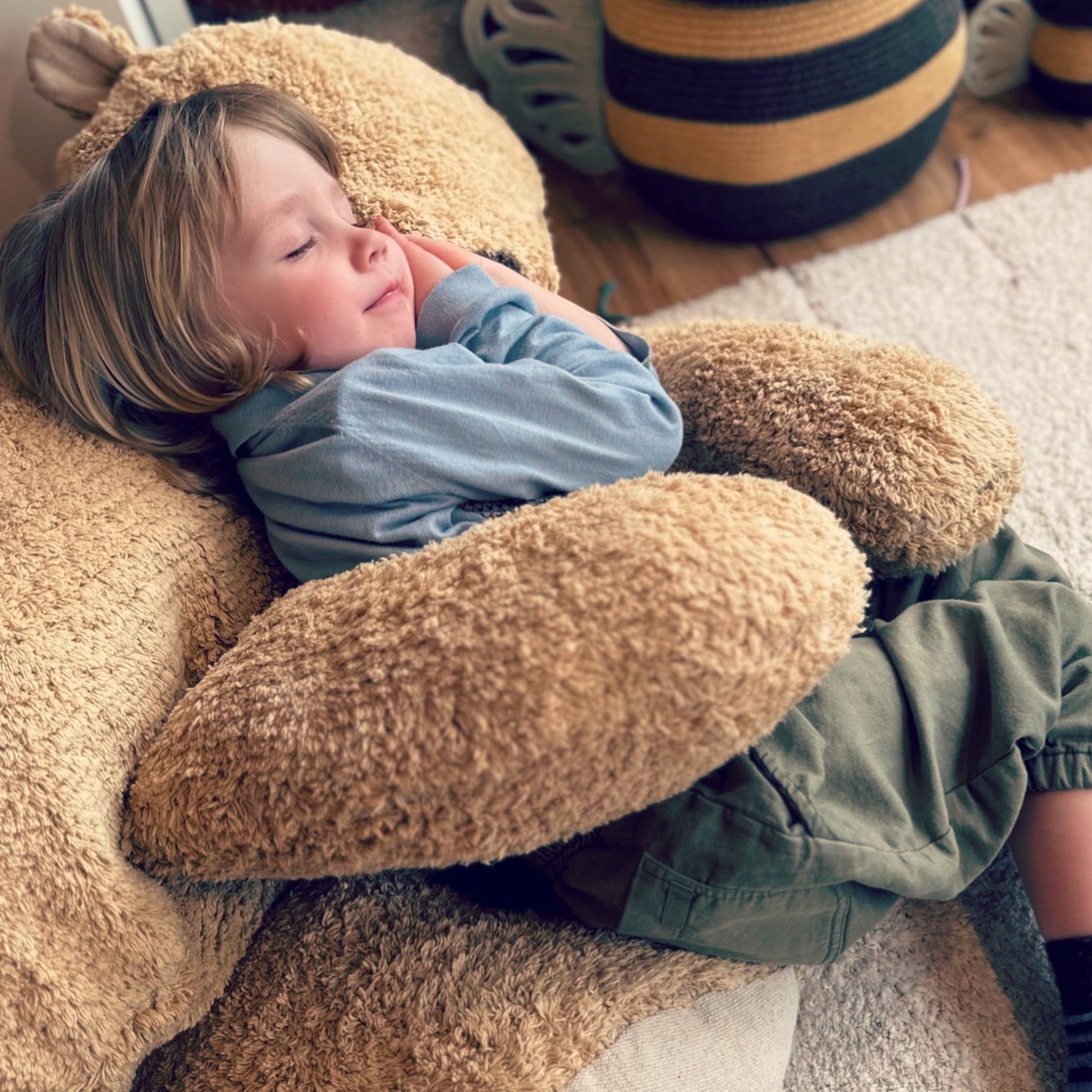 Lerne Sleepy Bear kennen, deinen neuen unzertrennlichen Freund für ein Nickerchen und zum Kuscheln. Mit weichem Baumwollfell, praktischem Reißverschluss und herausnehmbarer Innenfüllung ist der große, schläfrige Bär perfekt zum Spielen und Entspannen. Bezug aus 97% Baumwolle und 3 anderen Fasern. Waschbar.