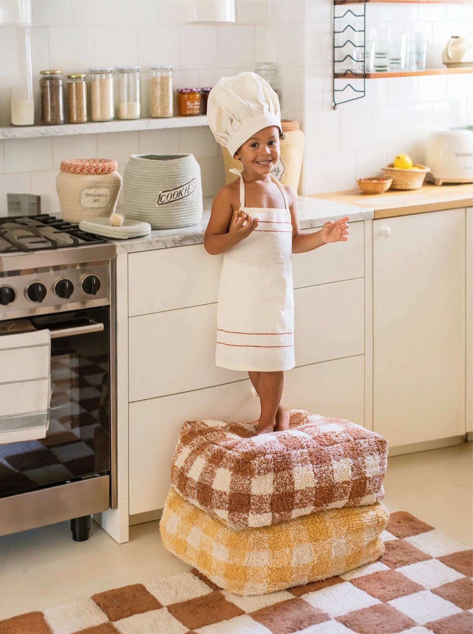 Mit dem Spielkorb kleiner Chefkoch von Lorena Canals wird dein Kleiner zum Profikoch! Dieses Textilspielzeug beinhaltet alles, was es braucht, um die kulinarischen Fähigkeiten zu fördern. Der Korb in Topf-Form enthält eine Deckel, einen Kochlöffel und sogar eine Kinder-Schürze und Kochmütze. Aus 33% recyceltem Polyester und 67% Baumwolle.