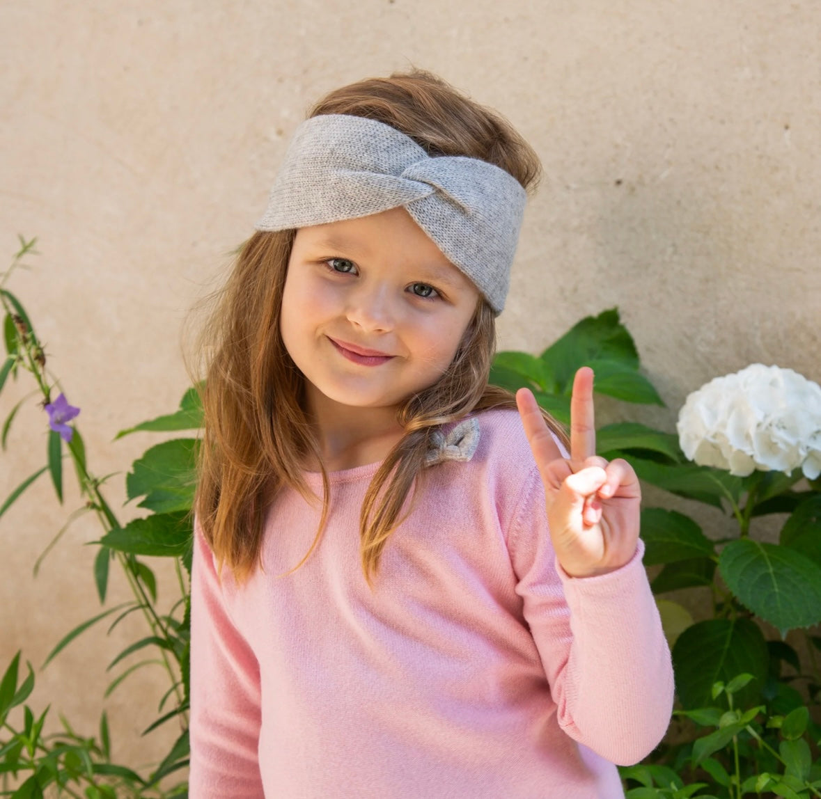 Kuscheliges Stirnband von Papa Lobster ist perfekt für die kühleren Jahreszeiten. Hergestellt aus 100% Kaschmir, bietet es strapazierfähigen und pflegeleichten Komfort. Mit einem verspielten Knoten-Detail auf der Stirn hält es die Ohren Ihres Kindes garantiert warm.