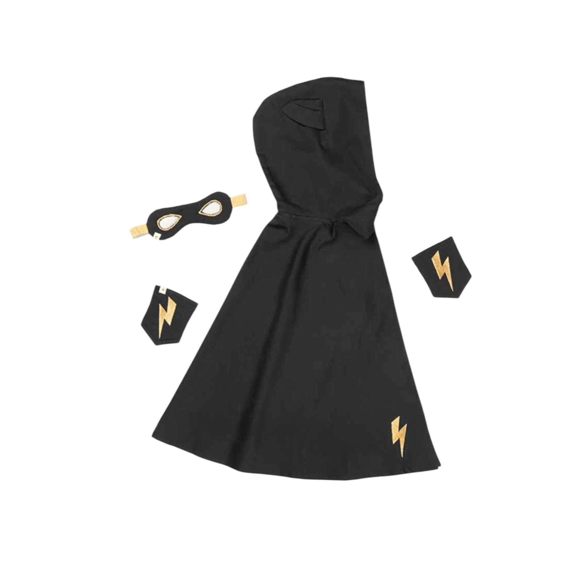 Verwandeln Sie Ihr Kind mit dem Superhelden Kostümset von Fabelab in einen echten Helden! Das Set besteht aus einem coolen Umhang mit Kapuze und Ohren, sowie einer Maske und mit Goldfadenstickerei. Hergestellt aus 100% Bio-Baumwolle, bietet es Komfort und Nachhaltigkeit. Ideal für Kostümpartys oder als Inspiration für das nächste Abenteuer zuhause.