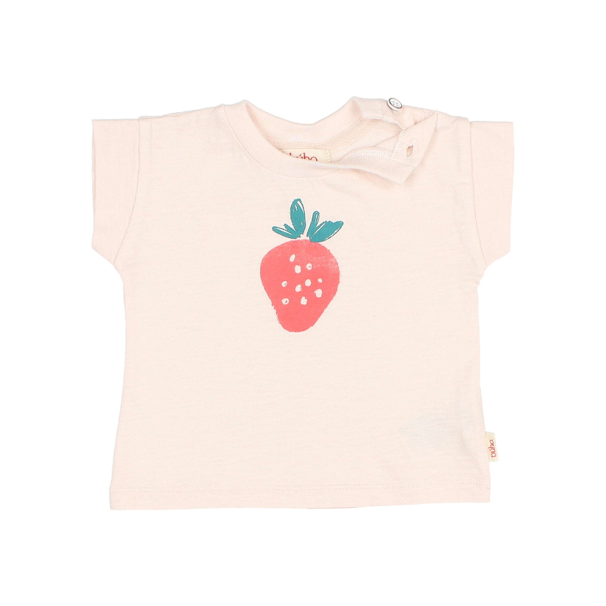 Dieses süße T-Shirt von Búho verbindet Komfort und Stil. Hergestellt aus biozertifizierter Baumwolle, sorgt es für sanften Tragekomfort auf der zarten Haut Ihres Babys. Der praktische Knopfverschluss an der Schulter erleichtert das An- und Ausziehen, während das fröhliche Erdbeerdesign jedem Outfit einen Hauch von Spaß verleiht.