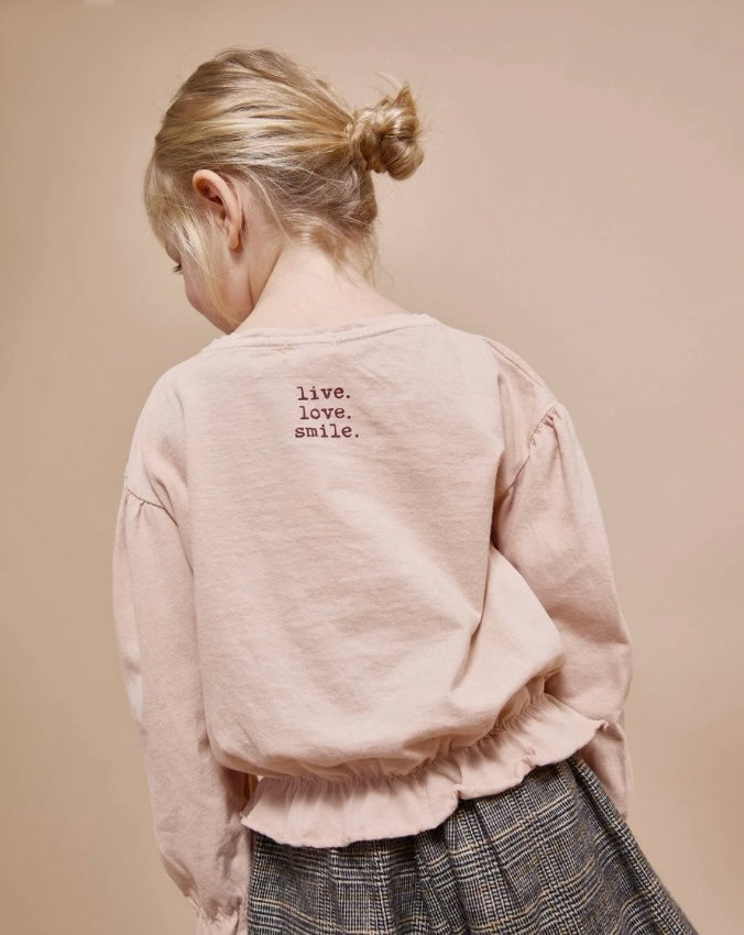 Die langärmlige T-Shirt mit Puffärmeln, Rüschen an Saum und Handgelenken sowie einem gedruckten Motiv auf dem oberen Rücken ist aus 100% Biobaumwolle. Ein perfektes, nachhaltiges Kleidungsstück für den Alltag.
