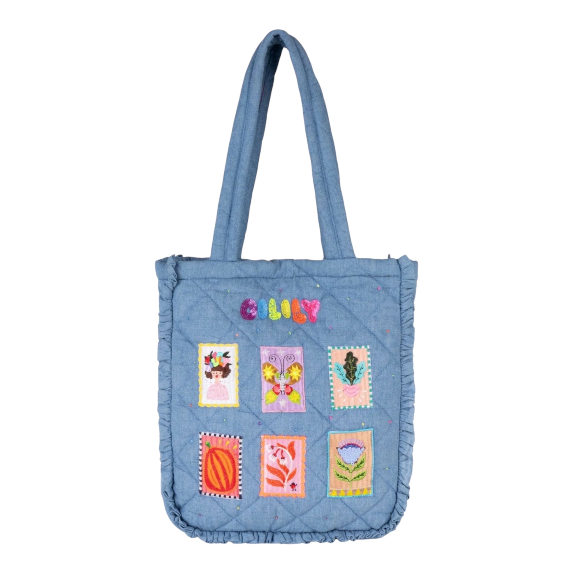 Die Tatum-Tasche von Oilily ist ideal für den Alltag. Sie besteht aus leichtem Denim mit Cards-Print versehen und ist mit funkelnden Pailletten akzentuiert, die dem Ganzen einen Hauch von Glanz verleihen. Das magnetisch verschlossene Hauptfach bietet viel Platz, während die eingearbeitete Reißverschlusstasche für eine sichere Aufbewahrung sorgt. Zudem ist die Tasche mit weichem Futter und einem bequemen Griff ausgestattet. Maße: 25 x 6 x 30 cm.