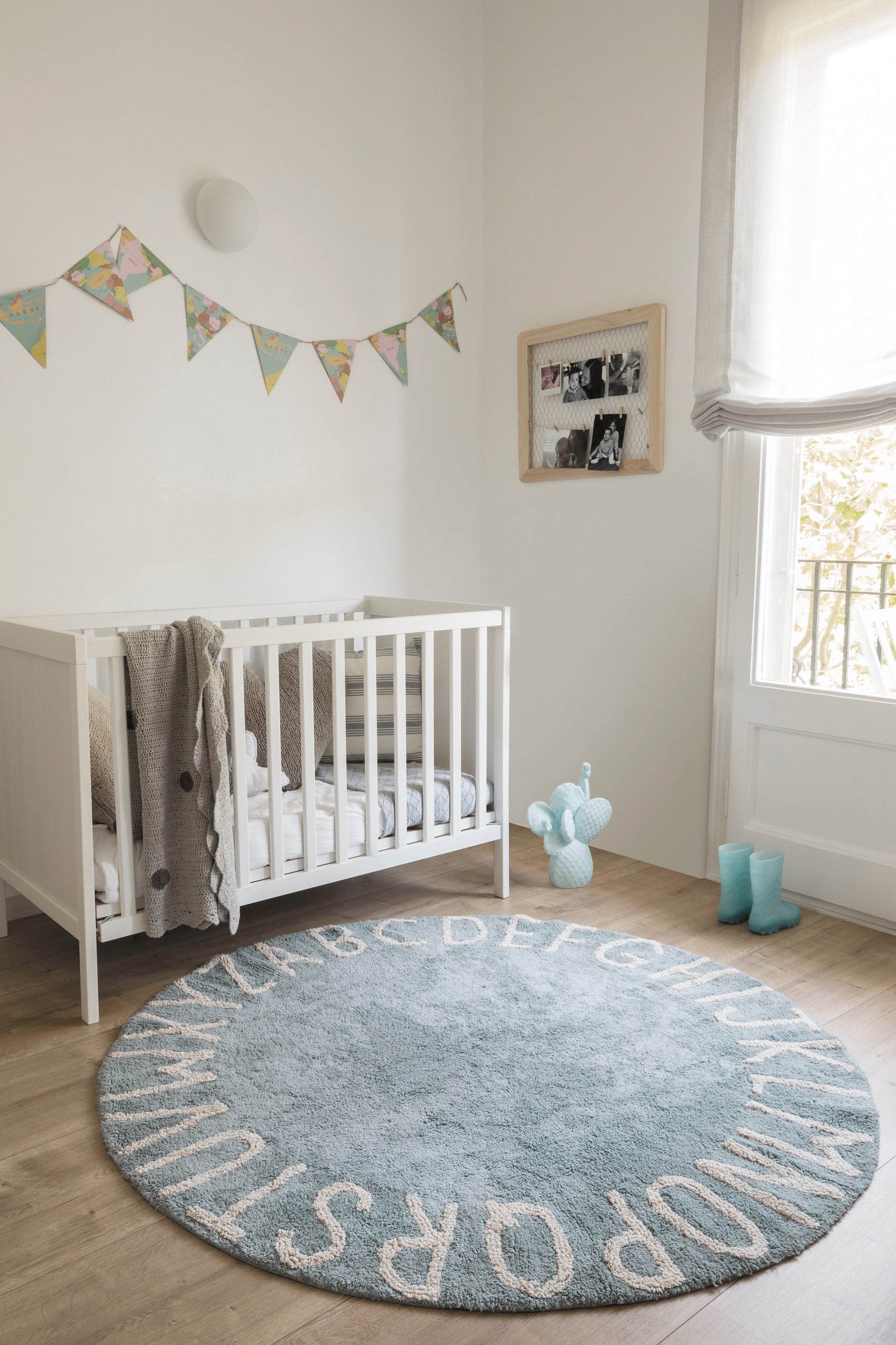 Der Teppich ABC von Lorena Canals in vintage blau ist nicht nur ein schönes Dekorationsstück, sondern auch ein pädagogisches Spielzeug. Kinder können auf ihm spielen und gleichzeitig ihr Alphabet lernen, indem sie die Buchstaben mit ihren Fingern nachzeichnen. Die sanfte Farbe und die anpassungsfähige runde Form machen ihn ideal für jedes Kinderzimmer oder als Spielecke im Haus.
