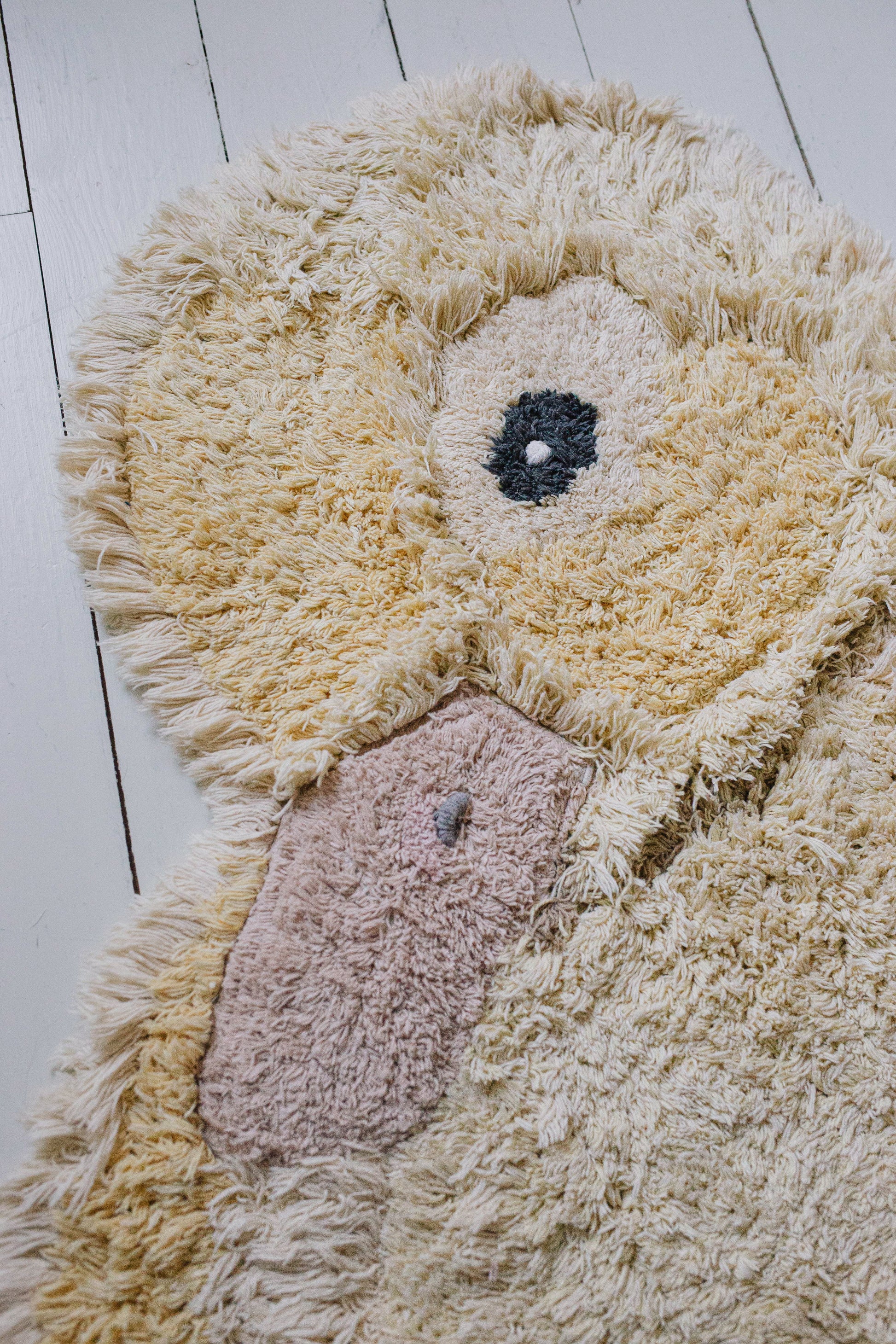 Der handgefertigte Teppich Ducky von Lorena Canals ist nicht nur bezaubernd, sondern auch praktisch. Aus waschbarer Baumwolle hergestellt, verleiht er jedem Raum eine süße Atmosphäre mit sanften Gelbtönen und einer runden, entenähnlichen Form. Die Texturen und Details, wie der erhabene rosa Schnabel und die flauschigen Beine, machen ihn zum perfekten Accessoire für ein Kinderzimmer. Zusätzlich besteht der Teppich aus nachhaltigen Materialien wie RugCycled Textilfasern.