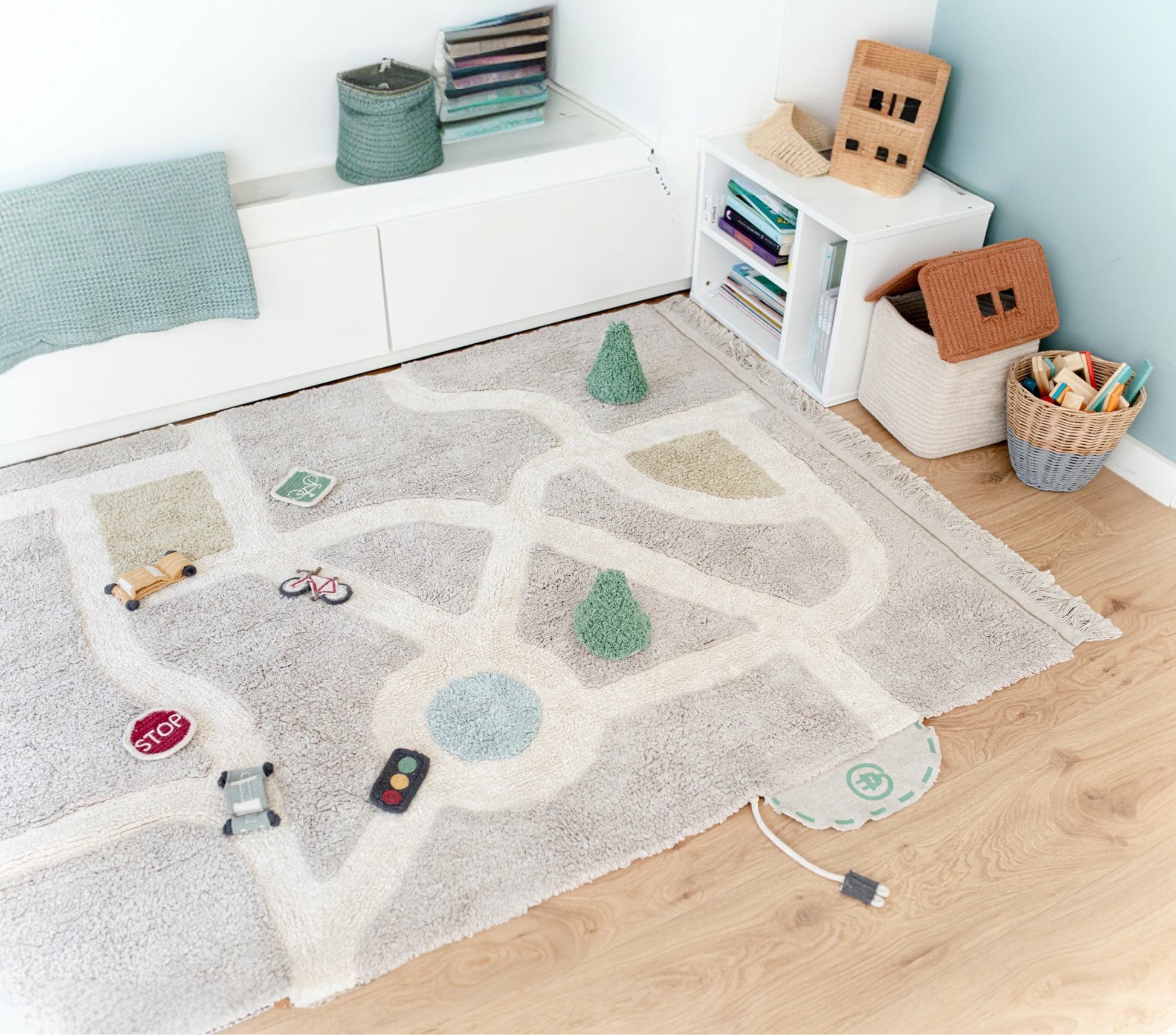 Das waschbare Teppich Eco-City von Lorena Canals ist nicht nur ein Spielteppich, sondern auch ein pädagogisches Hilfsmittel. Es ist ein abwaschbarer Plüsch-Stadtplan, auf dem Kinder spielerisch lernen können. Mit Schildern, Ampeln, Bäumen und Elektrofahrzeugen, die leise und sauber fahren, wird die Fantasie der Kinder angeregt. Perfekt für eine ökologische und pädagogisch wertvolle Spielzeit!