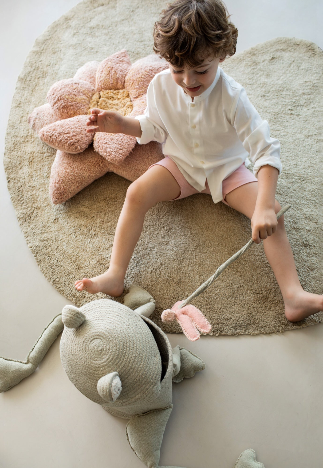 Entdecken Sie die Vielseitigkeit des waschbaren Teppichs von Lorena Canals. Mit seinem abnehmbaren blumenförmigen Kissen ist er nicht nur ein stilvolles Wohnaccessoire, sondern auch perfekt für ein fantasievolles Kinderzimmer oder Spielzimmer.