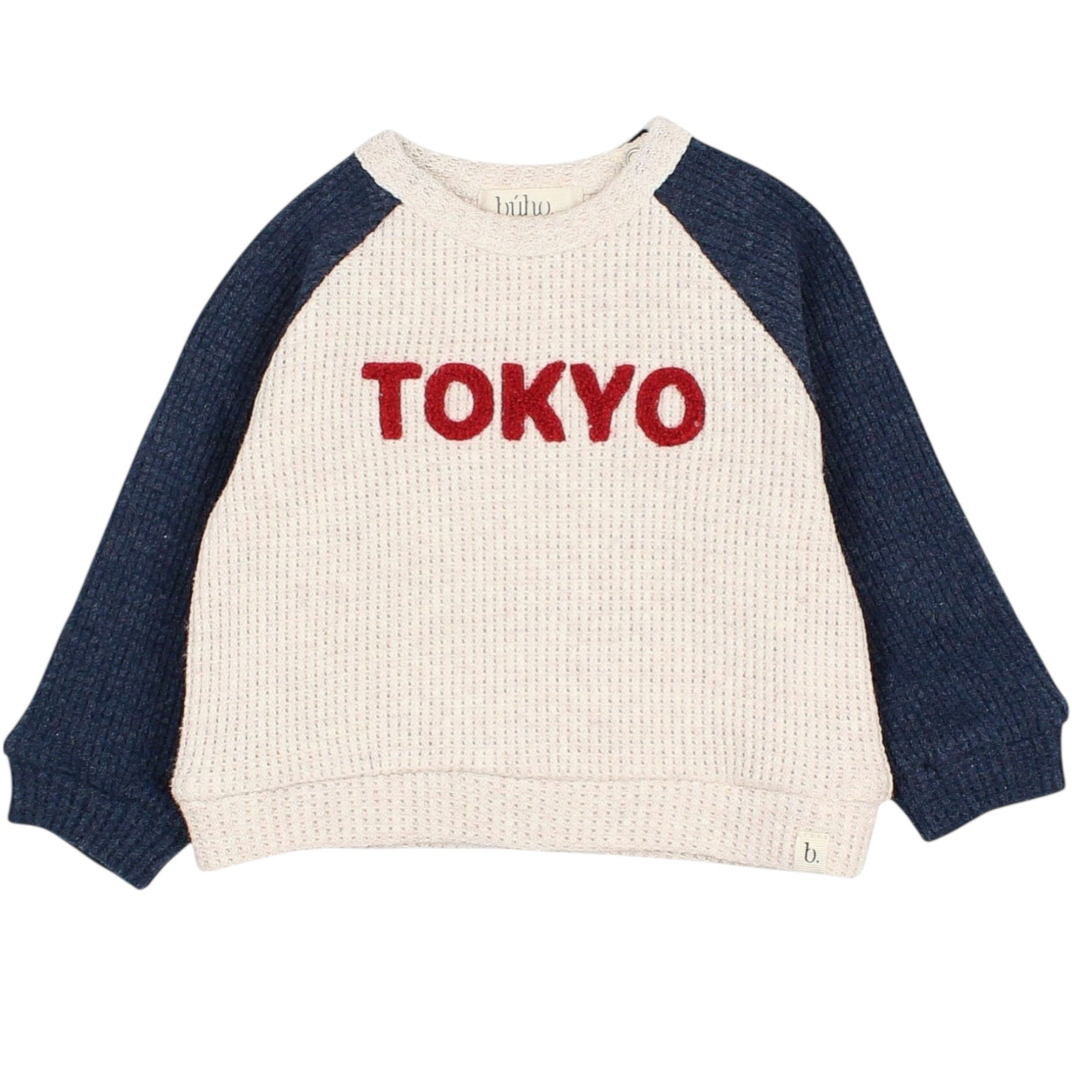 Das Tokyo Sweatshirt von Búho ist ein Must-Have für kleine Entdecker! Das Waffelstrickmaterial sorgt für Wärme und hohen Tragekomfort, während die Motivstickerei von der pulsierenden Stadt Tokyo inspiriert ist. Der Rundhalsausschnitt mit Knopfverschluss und die kontrastierenden Raglanärmel verleihen dem Sweatshirt einen modernen Look. Dank des Baumwollmaterials ist es zudem langlebig und pflegeleicht. Ein süßes Tab-Etikett am Saum rundet das Design ab.