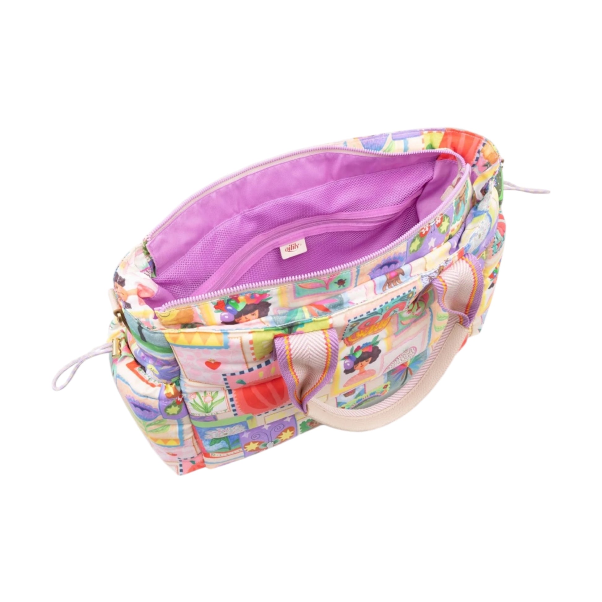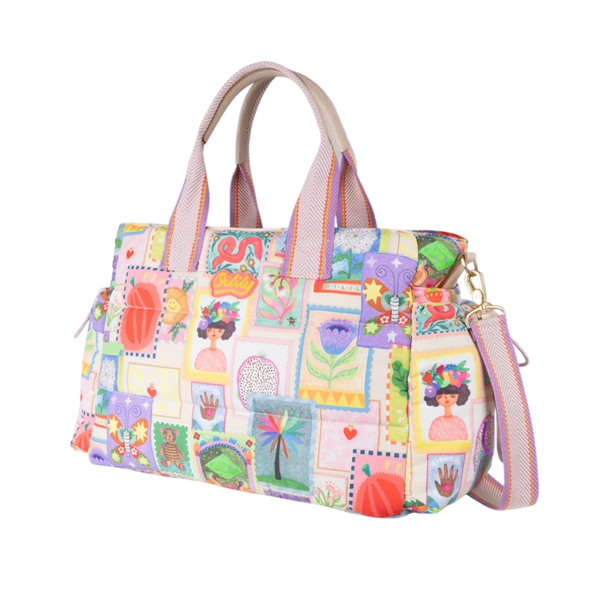 Die Wickeltasche von Oilily ist mit dem bunten Tesni Cards-Aufdruck ein echter Hingucker. Der abnehmbare und verstellbare Schultergurt bietet Ihnen Komfort und Flexibilität. Dank der 2 abnehmbaren Kinderwagengurte können Sie die Tasche auch ganz einfach am Kinderwagen befestigen. Das geräumige Hauptfach mit Reißverschluss bietet Platz für alles, was Sie und Ihr Baby unterwegs benötigen. Die Windelmatratze und die 2 großen offenen Taschen mit Gummizug sorgen für eine organisierte Aufbewahrung. Die 2 Seitentaschen mit Kordelzug bieten zusätzlichen Stauraum. Dank der recycelten Polyester-Beschichtung ist die Tasche wasserabweisend und die Details aus Kunstleder verleihen ihr eine hochwertige Optik.