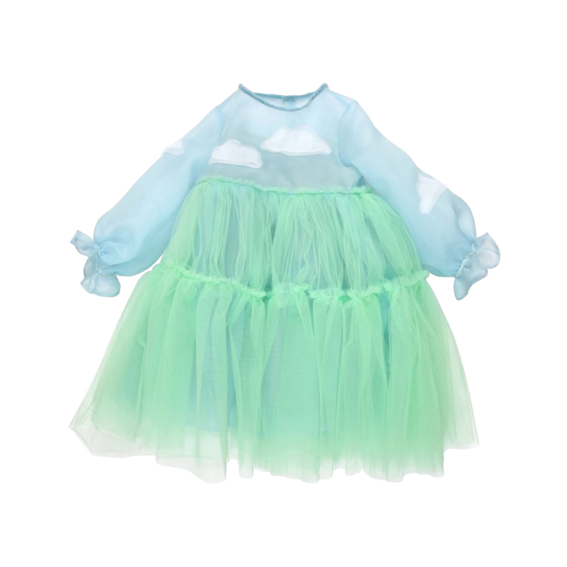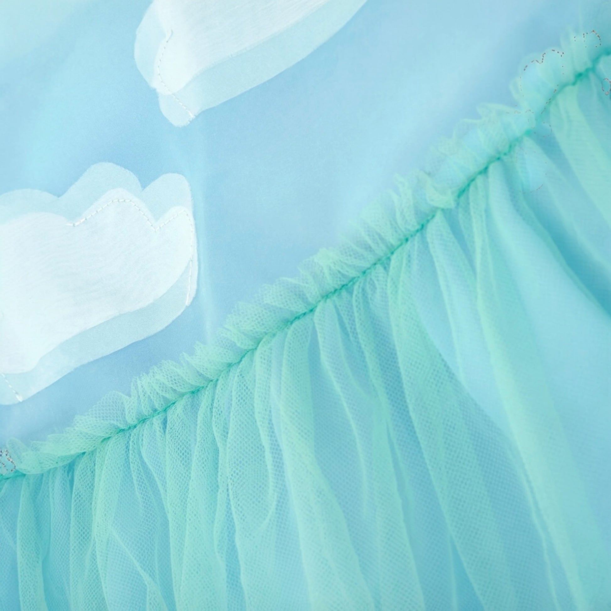 Das Wolken-Kostüm von Meri Meri ist perfekt für kleine Träumerinnen von 3-6 Jahren. Das wundervolle Kleid aus blauem Organza mit aufgenähten weißen Wolken und Tüllrock in Mattgrün lässt jedes Kind wie eine Prinzessin fühlen.