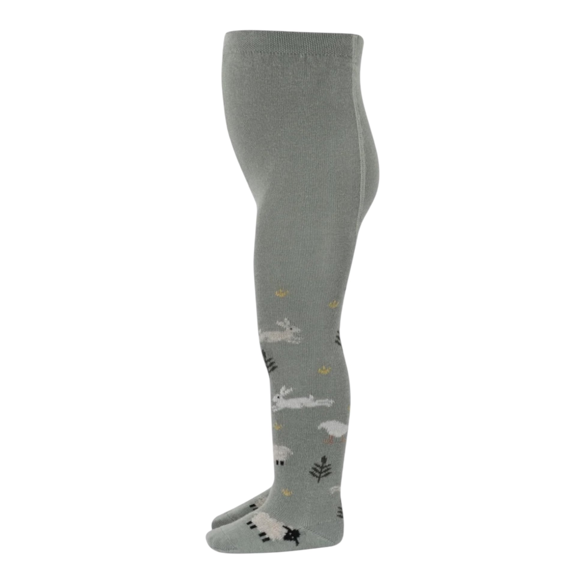 Eine wunderschöne und bequeme Wollstrumpfhose für Kinder! Hergestellt aus 80 % Superwash-Wolle, die bei 30 Grad in der Waschmaschine gewaschen werden kann. Der breite, weiche Gummibund bietet viel Bewegungsfreiheit für Ihr Kind. Zertifiziert nach OEKO-TEX Standard 100. Mit niedlichen Motiven von Schafen, Hasen und Hühnern.